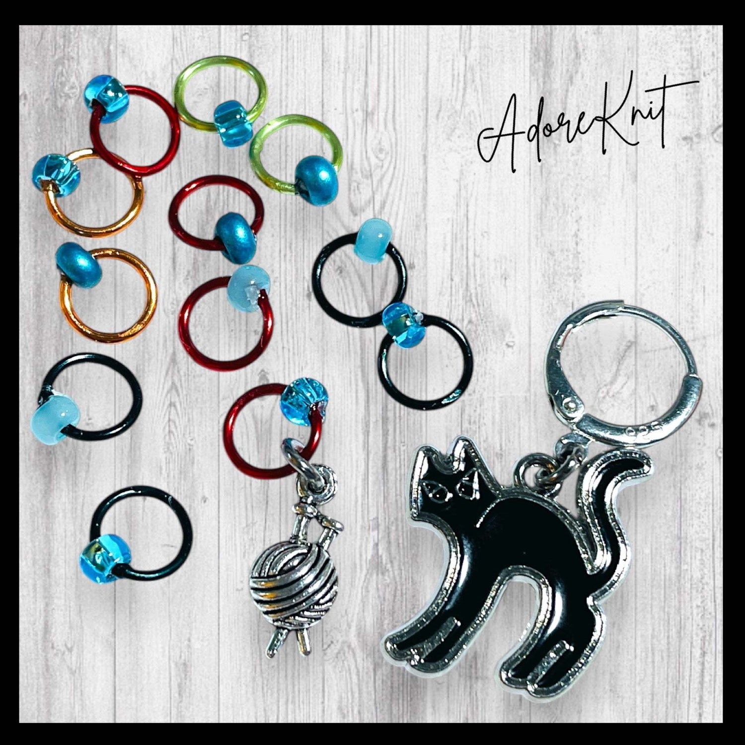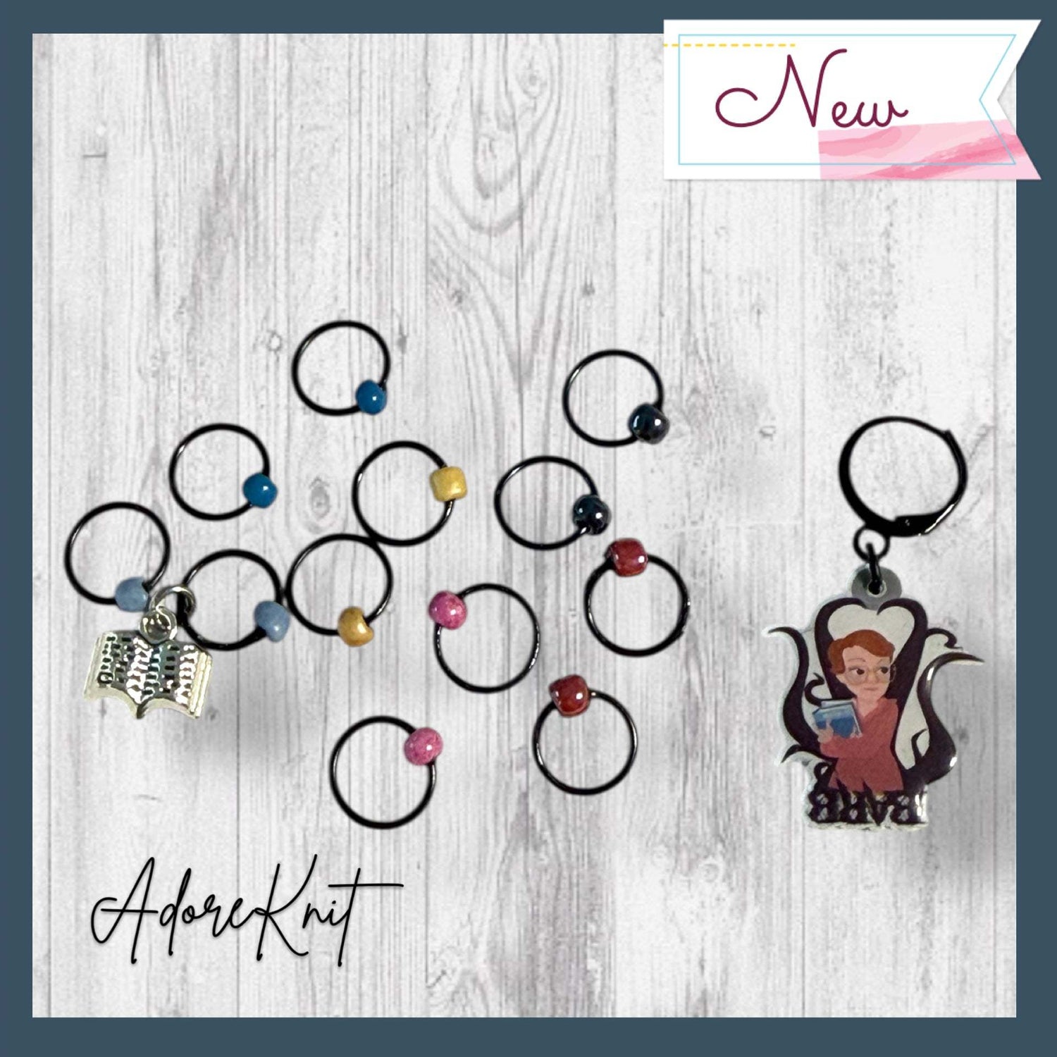 Knitting & Yarn Themed Progress & Stitch Markers as well as Project Bags