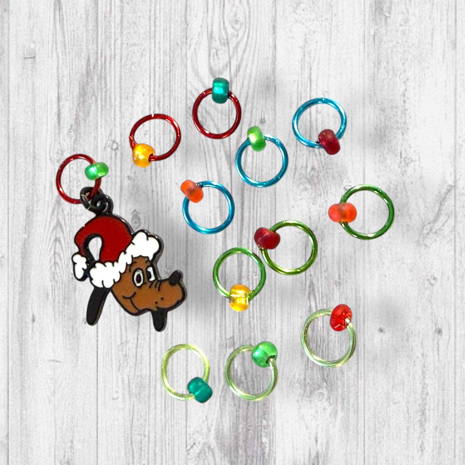The Grouch and his Ride or Die Reindog Progress and Stitch Markers are inspired by the classic 1966 animated movie and make the perfect gift for any knitter. These cheerful little markers are wonderful for knitters and crocheters alike and are delightful to tuck into a swap package, give to a teacher, or brighten the day of the maker in your life.