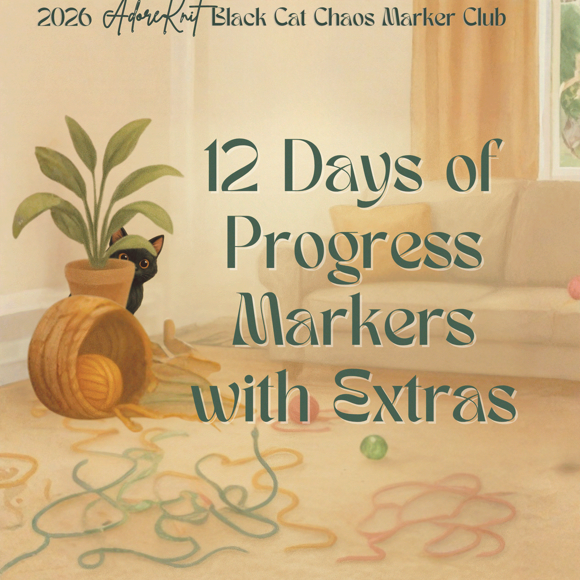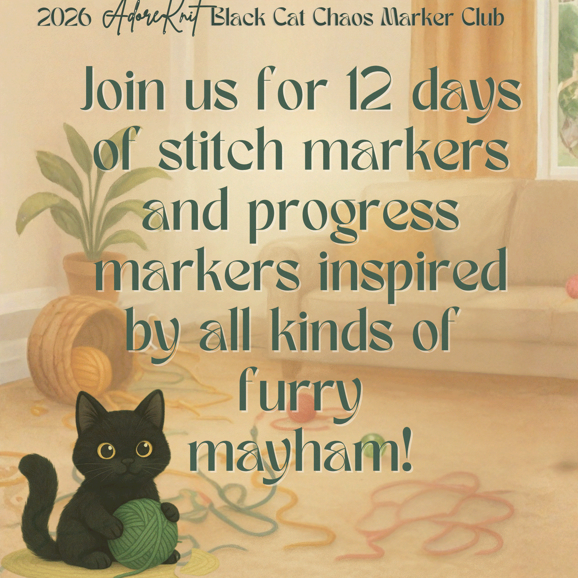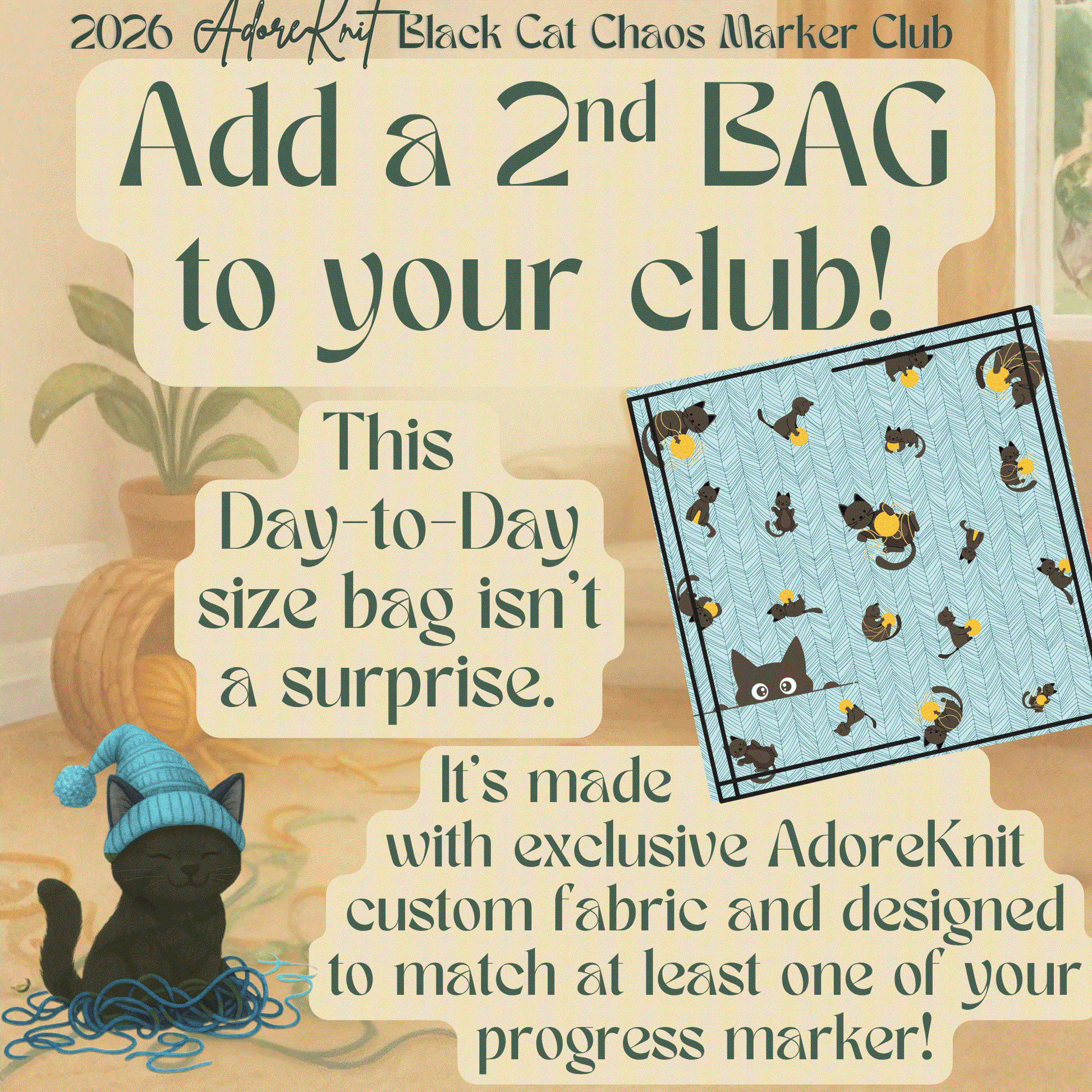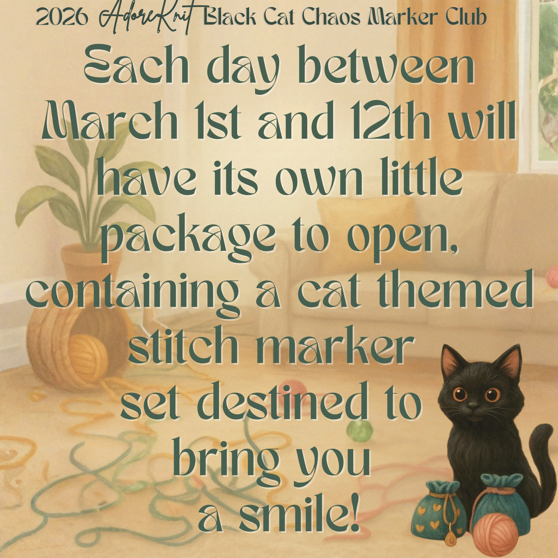 2026 Black Cat Chaos Marker Club, 12 Days of Stitch & Progress Markers, Yarn, Project Bags