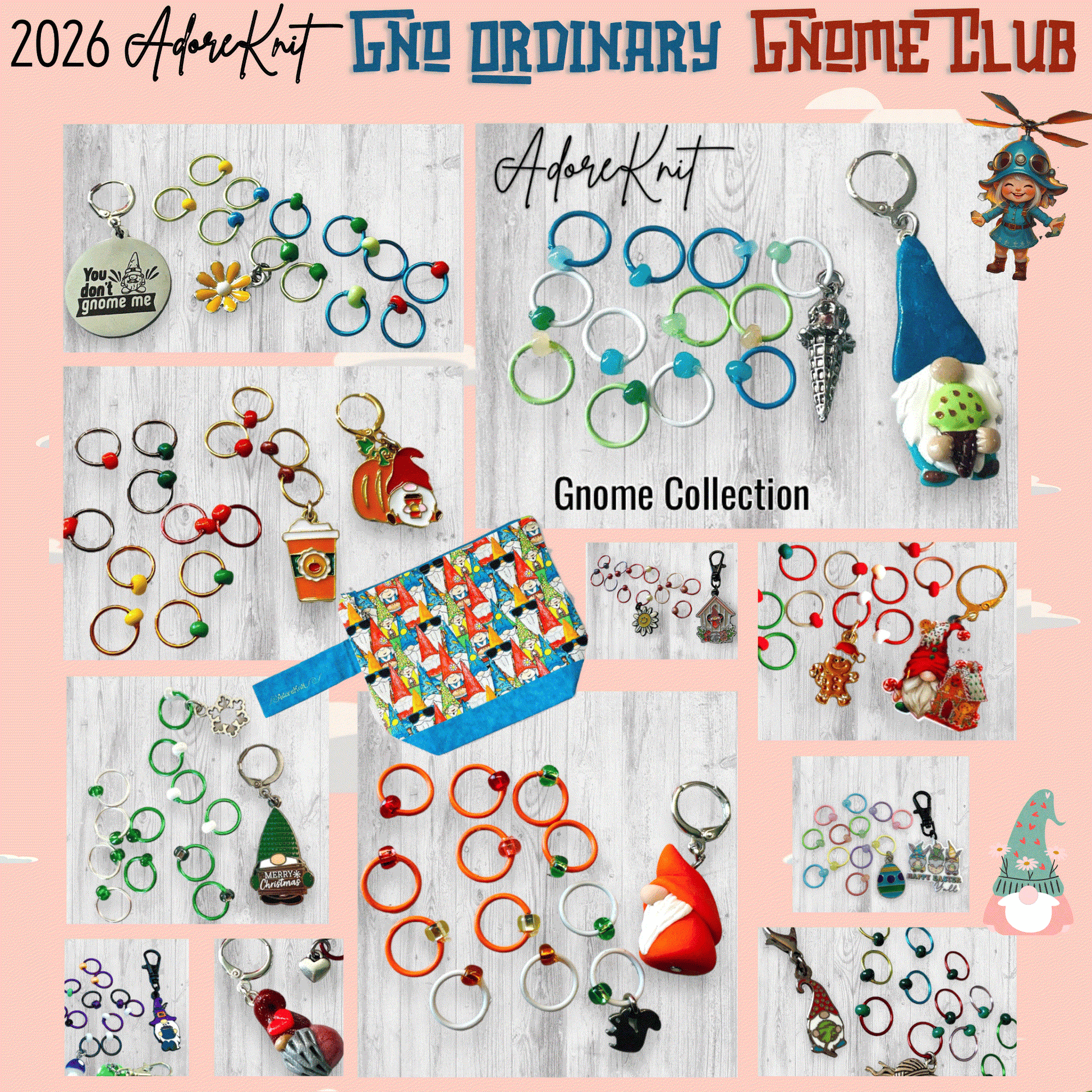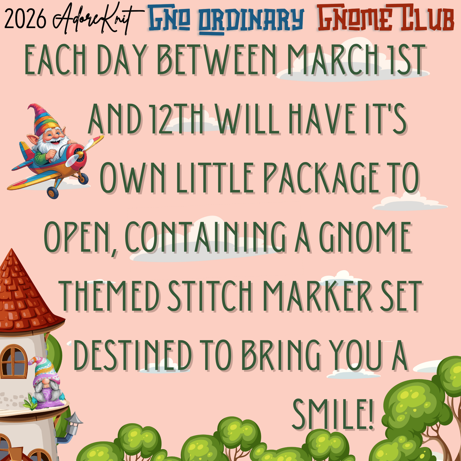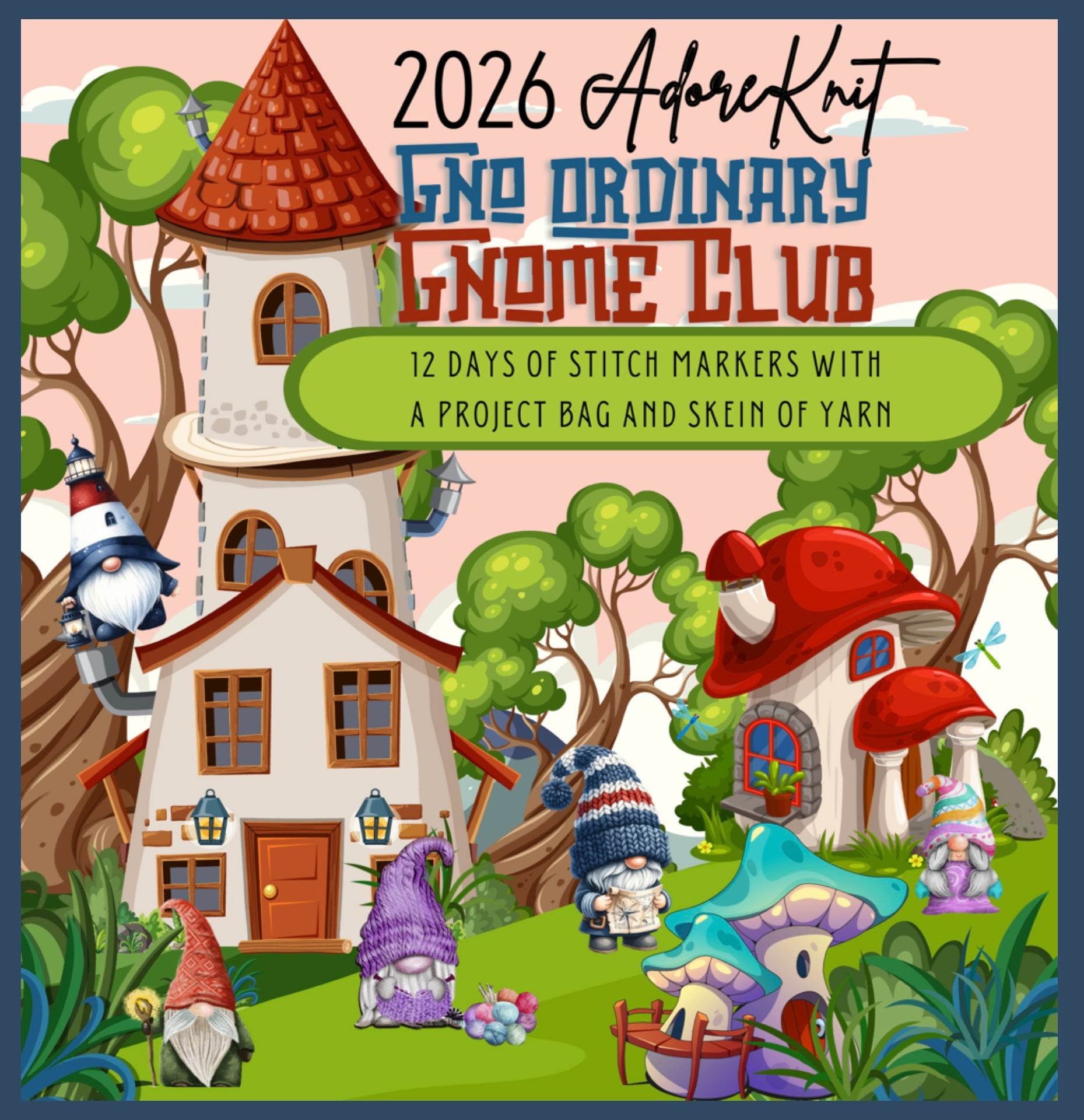 2026 GNo Ordinary GNOMES Countdown Club, 12 Days of Stitch & Progress Markers, Yarn, Project Bags