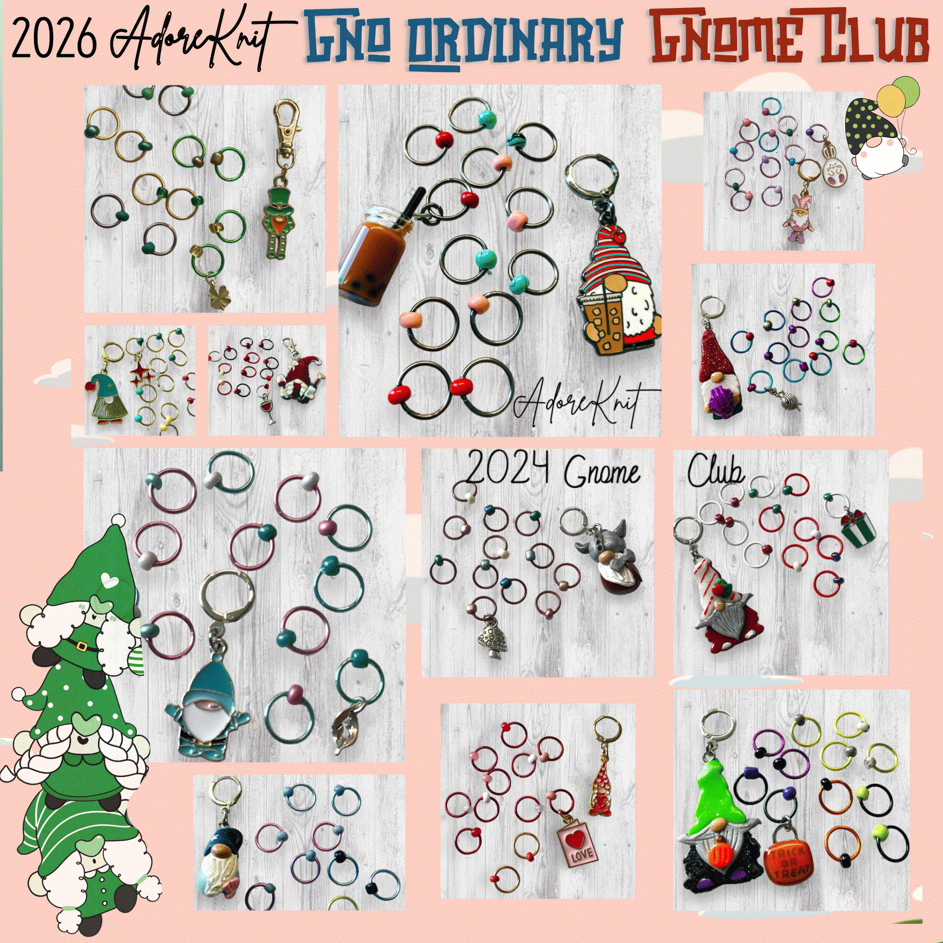The images shown are from past Gnome Clubs and past gnome marker sets we’ve offered in the shop, they give an idea of what you can expect in the 2026 Gno Ordinary Gnome Club.