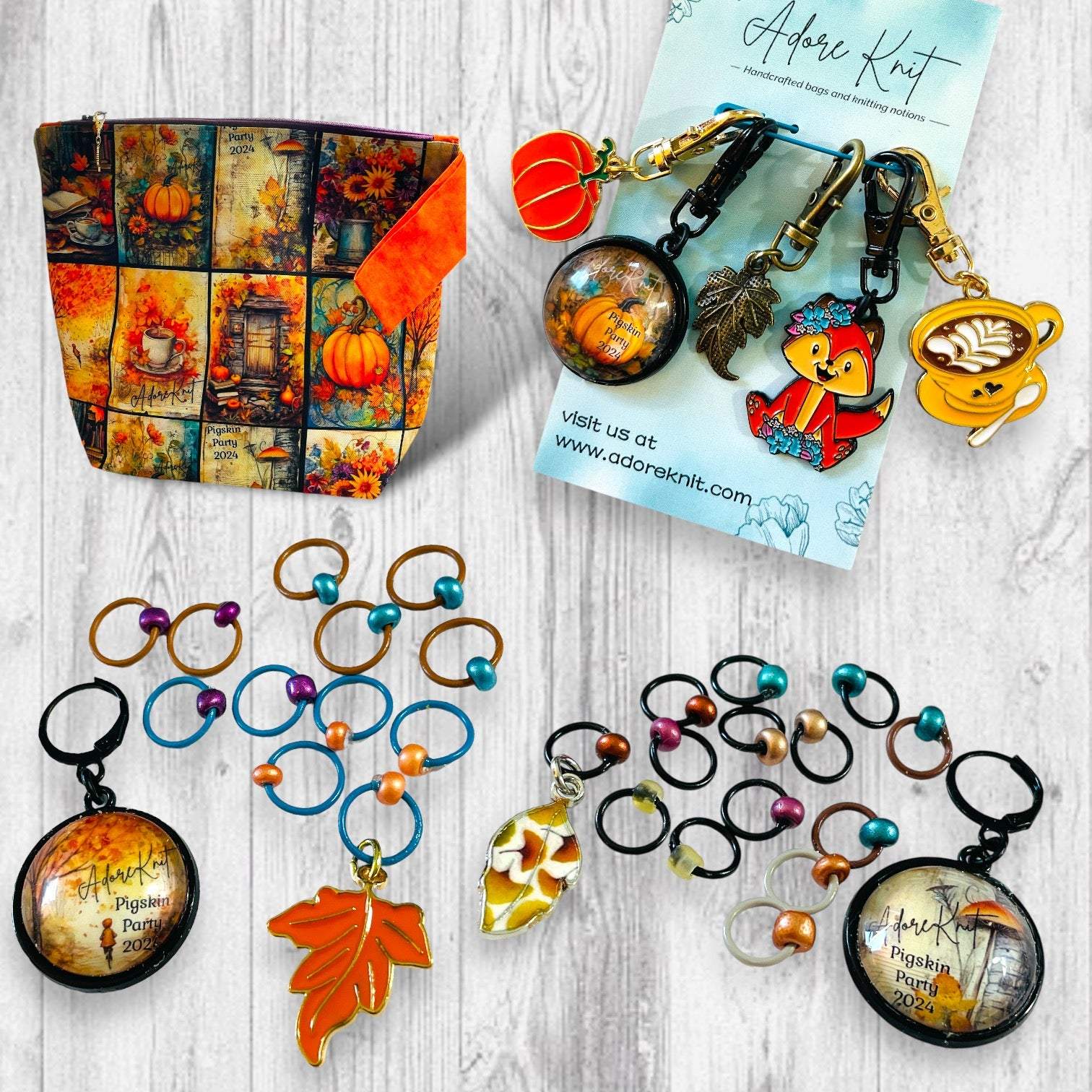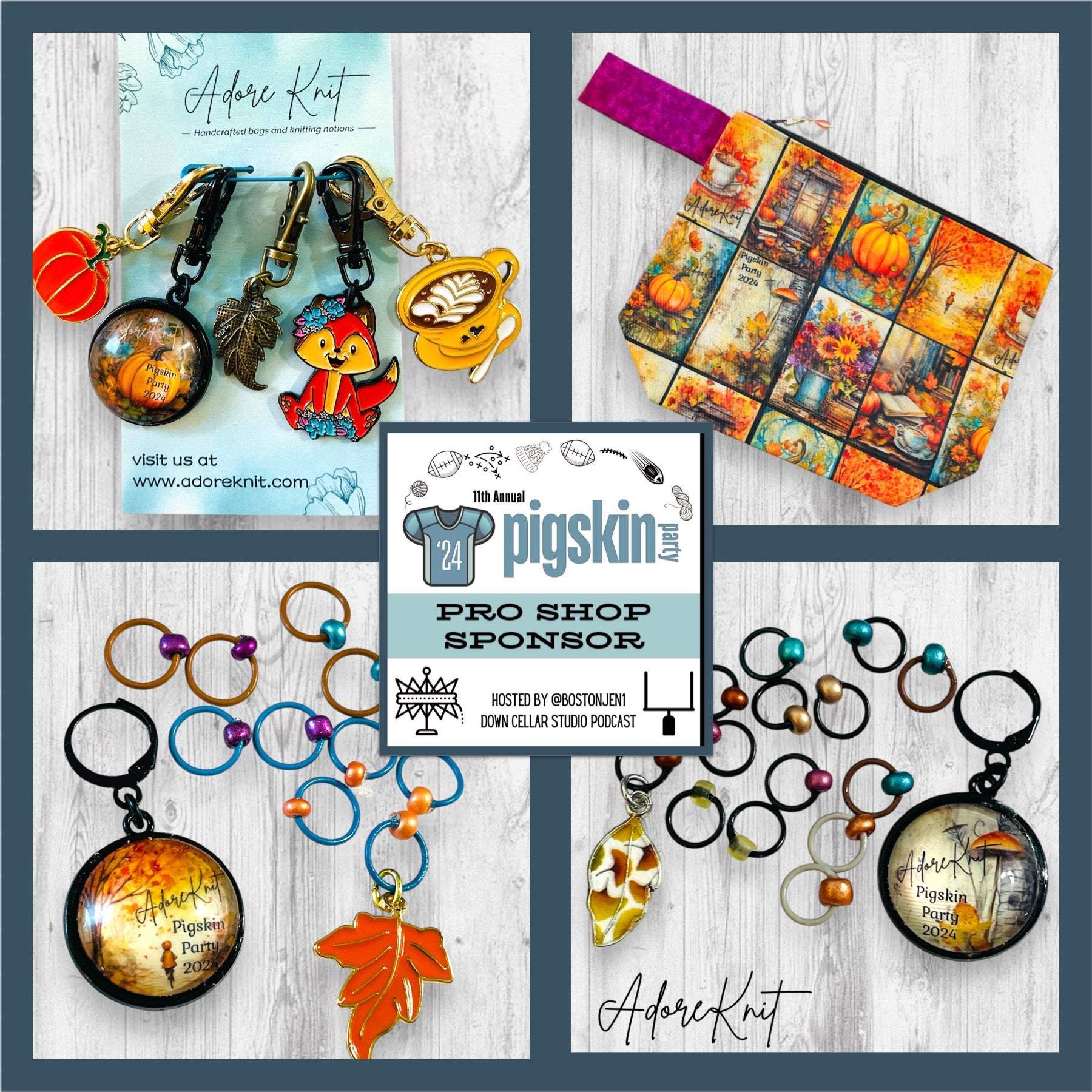 This year the AdoreKnit Exclusive collection boastsĀ Pigskin Party Project bags in your choice of zipper color (black, purple, teal), as well asĀ two progress and stitch marker options, and aĀ set of progress marker.Ā We couldnāt be happier with where we ended up for this yearās Pigskin Party Exclusive items.Ā To see the other bags and stitch markers available please visit theĀ AdoreKnit 2024 Exclusive Pigskin Party Collection!