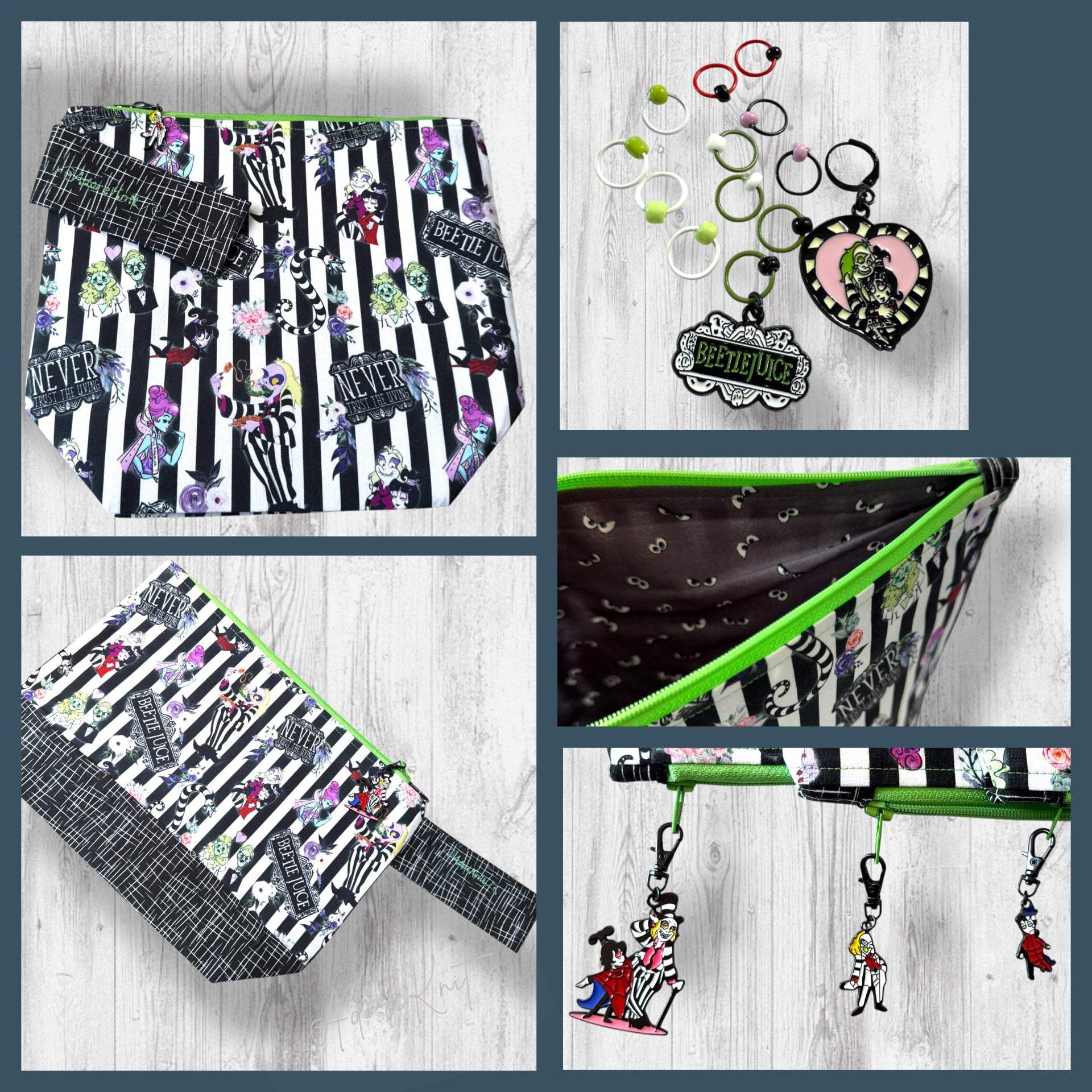 Beetlejuice and Lydia Progress & Stitch Markers are the perfect match for our Beetlejuice Stripe Project Bags. Strange and unusual… in the very best way. 👻