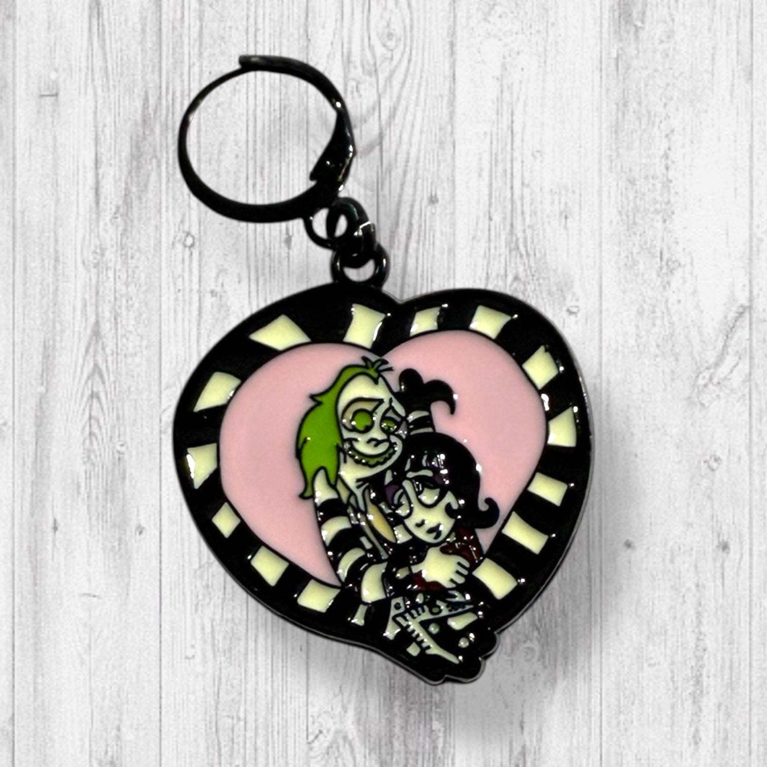 Our Beetlejuice & Lydia stitch markers are inspired by the spooky-fun duo who first came to life in the Beetlejuice movie (1988) and then became after-school cartoon icons in the animated series from the early 90s. Steph for one, loved watching Lydia and Beetlejuice tumble between the mortal world and the Netherworld. Now that same playful energy can dangle from your knitting and crochet projects.