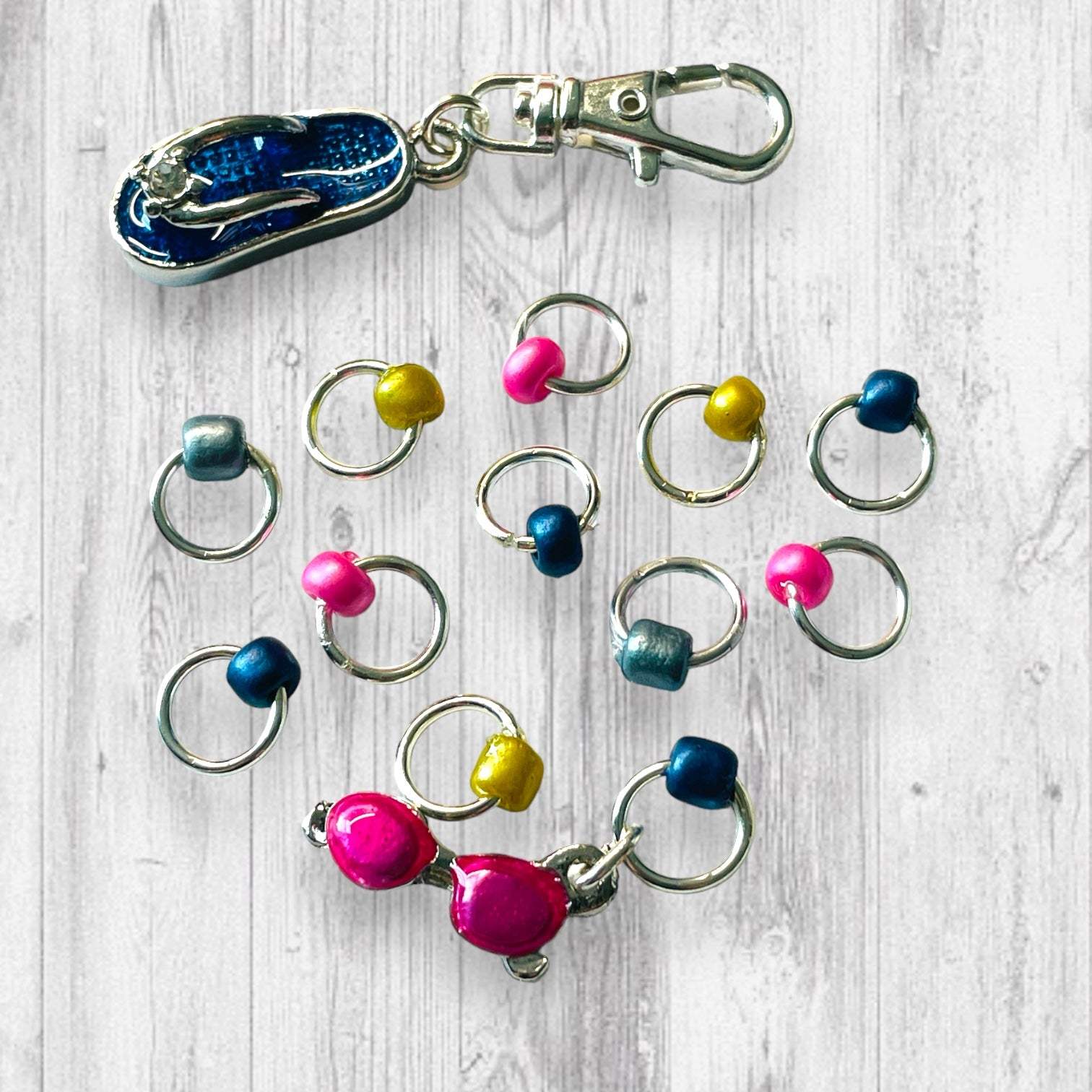 * Go with both the Blue Flip Flop Progress Marker and 12 Stitch Markers (Including a purple flower BOR marker).