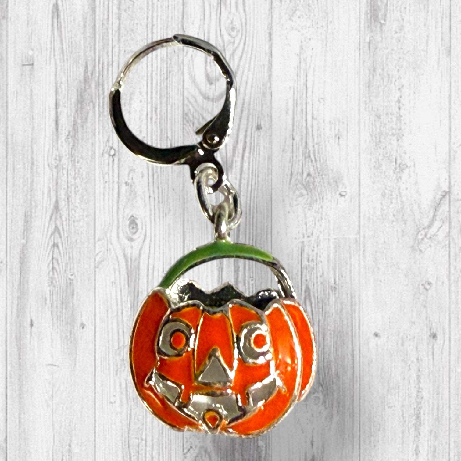 * A Set of 12 Stitch Markers that include a Jack-o-lantern bucket beginning of the round marker or