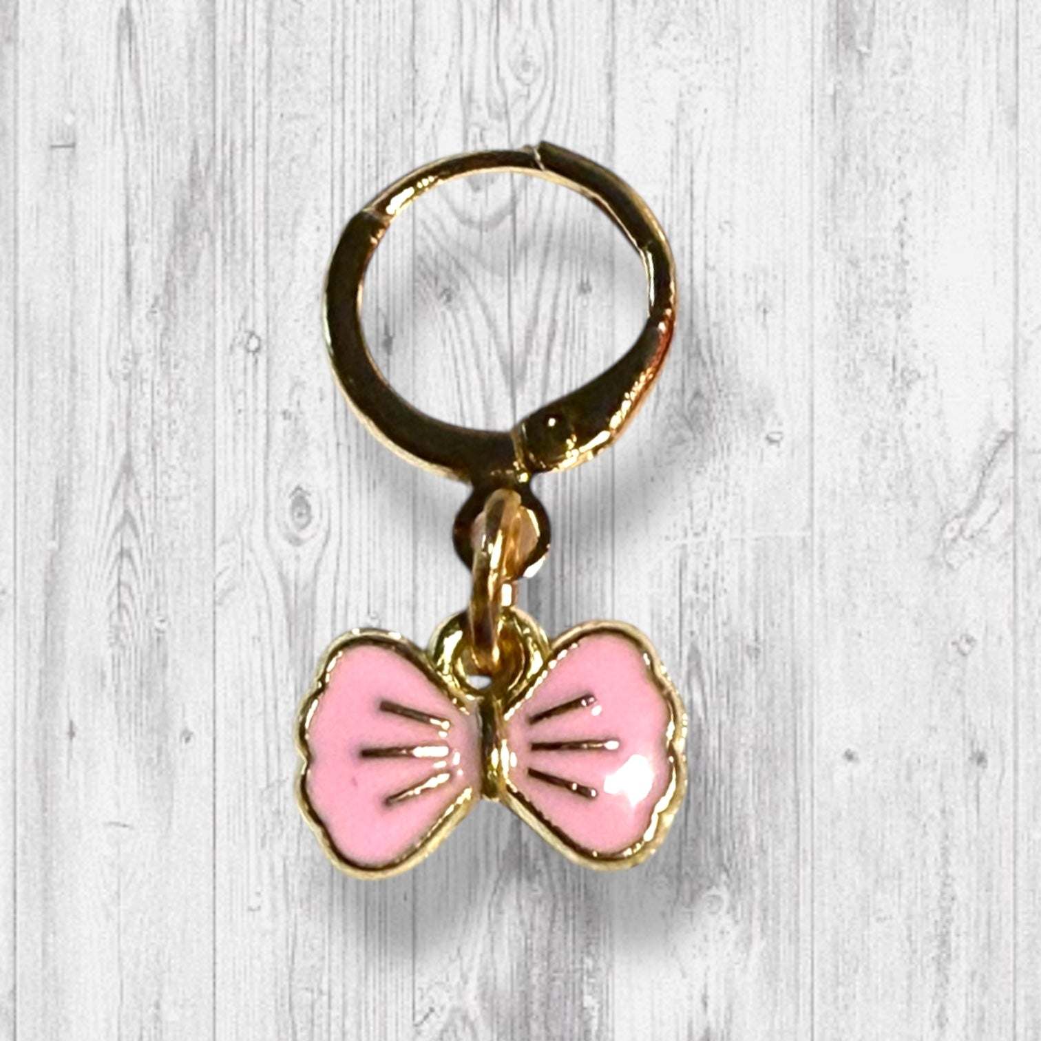 * A Set of 12 Stitch Markers that include a pink bow beginning of the round marker or