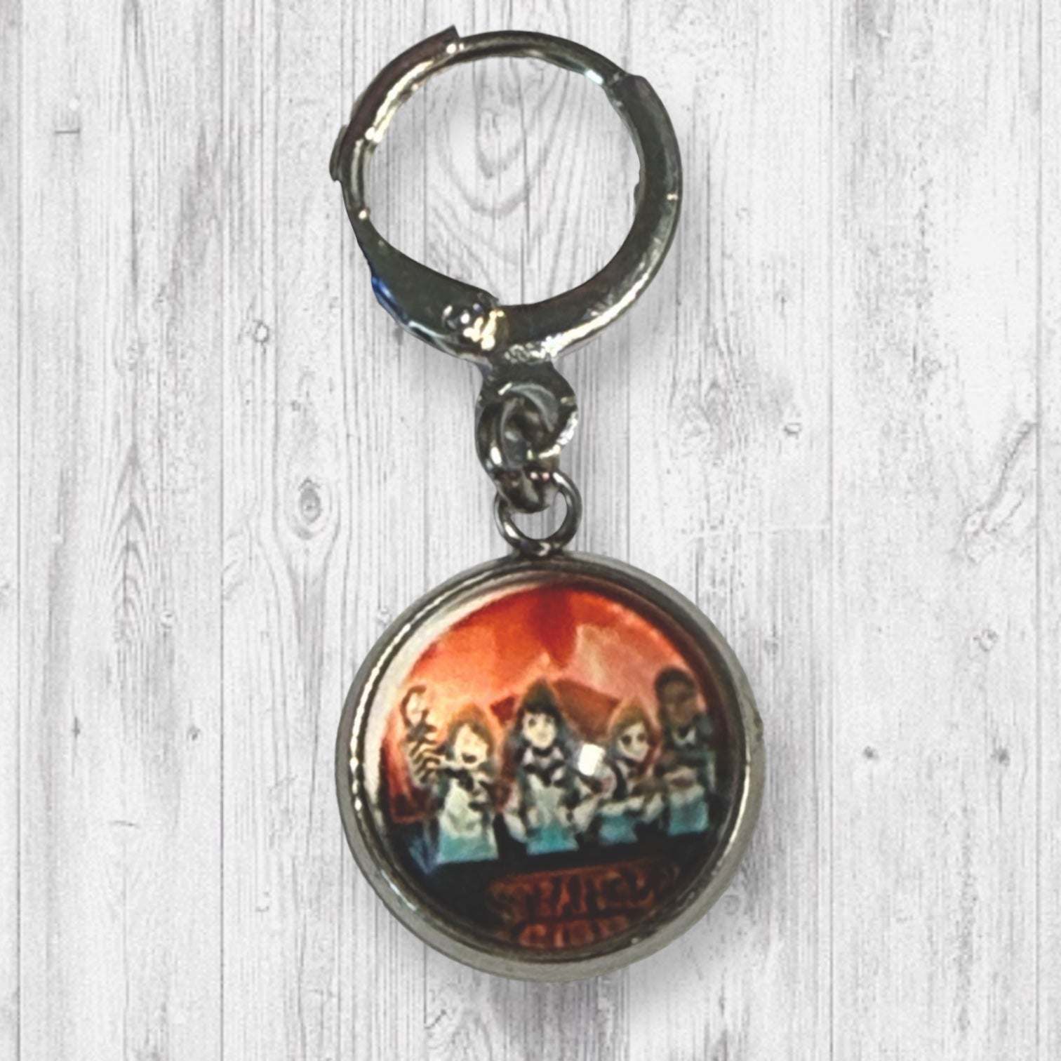 Each charm in this set captures that nostalgic 80s sci-fi vibe, with playful nods to dice games, walkie talkies, spooky shadows, and the power of friendship. These markers make a fun gift for knitters, crocheters, and anyone who grew up loving retro adventures and supernatural stories. Perfect for socks, hats, sweaters, or any project that deserves a touch of geeky fun.
