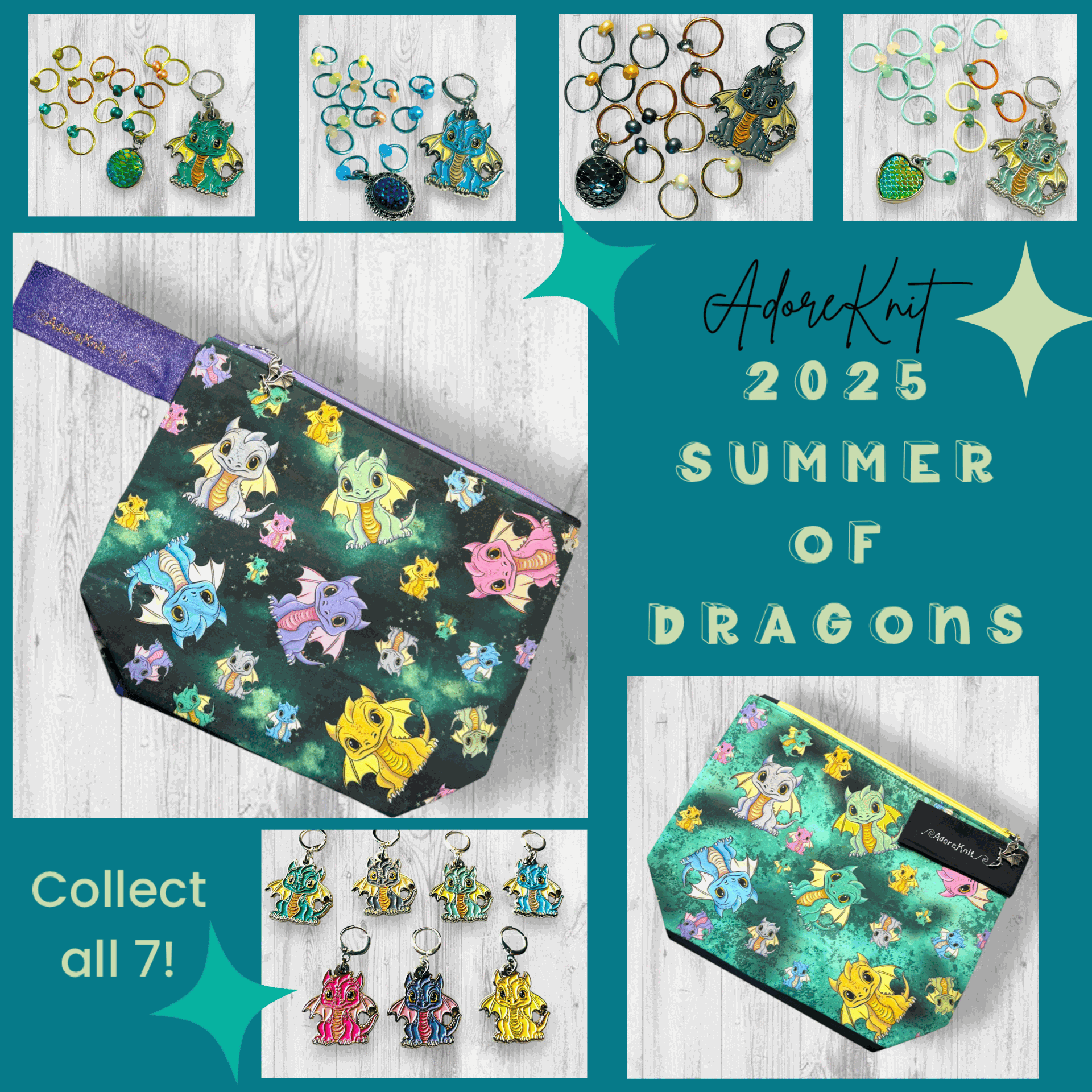This is an EXCLUSIVE dragon design from ADOREKNIT. Created by Samudri then translated into custom stitch markers and fabric designed by Steph. See the full collection!