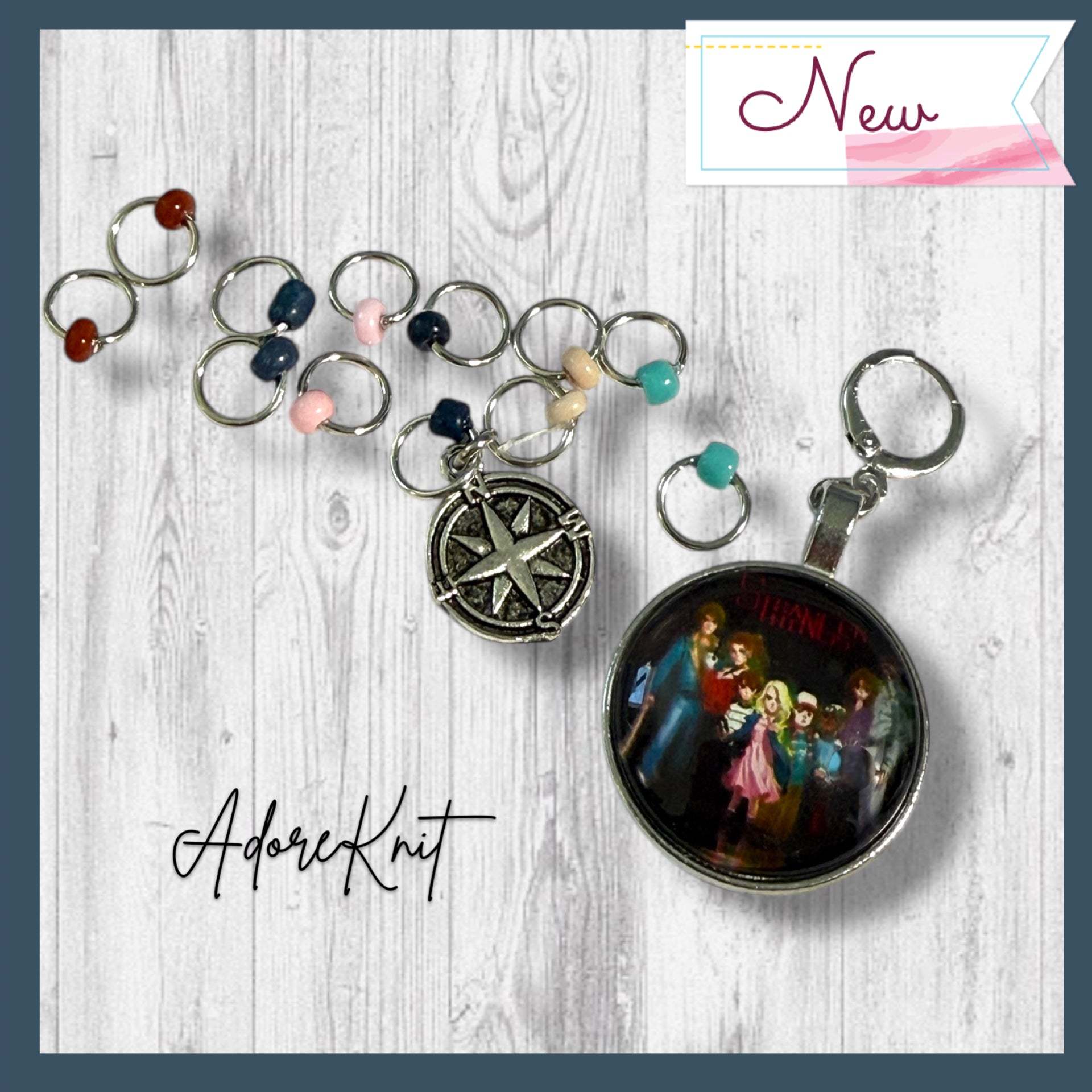 Each charm in this set captures that nostalgic 80s sci-fi vibe, with playful nods to dice games, walkie talkies, spooky shadows, and the power of friendship. These markers make a fun gift for knitters, crocheters, and anyone who grew up loving retro adventures and supernatural stories. Perfect for socks, hats, sweaters, or any project that deserves a touch of geeky fun.