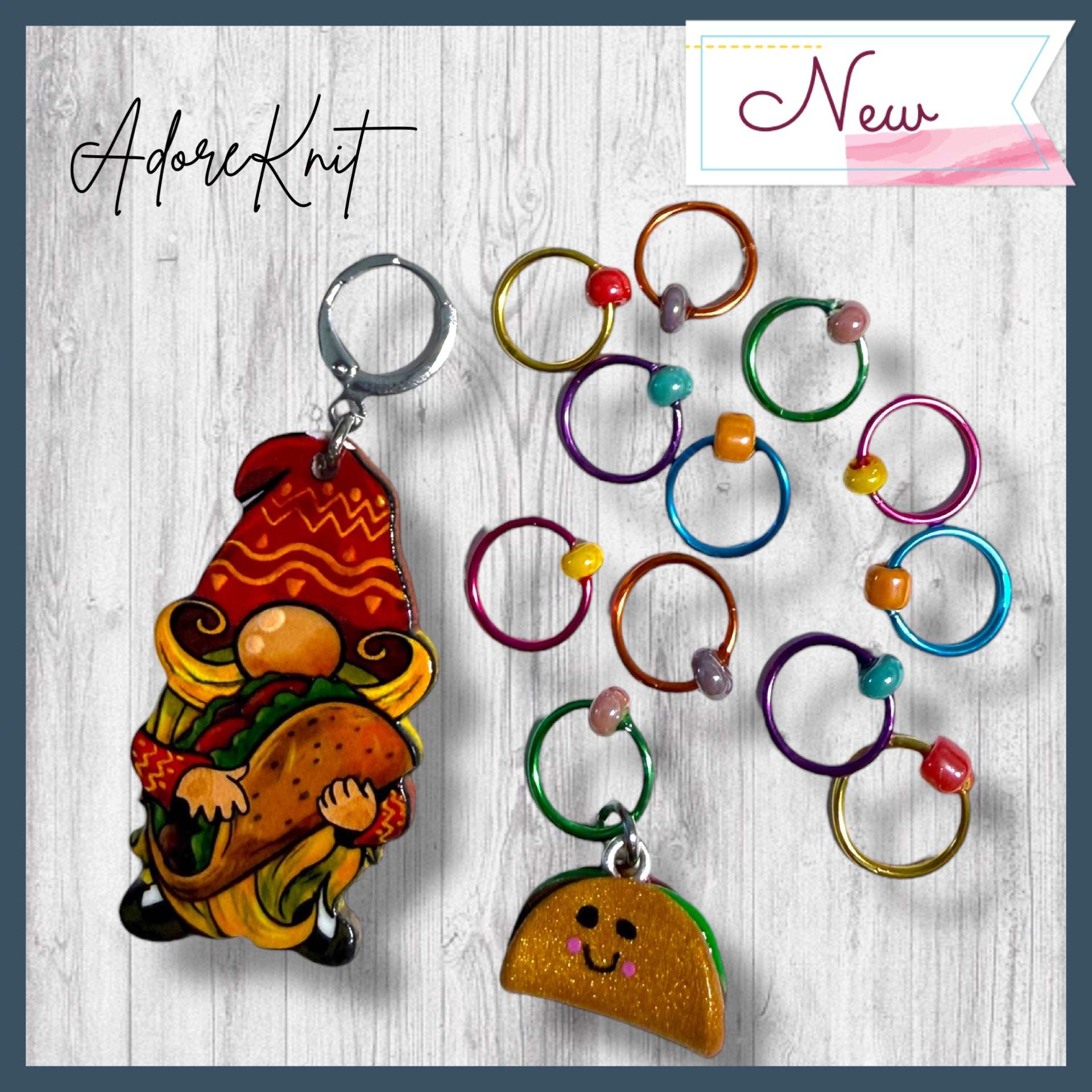 * Go with both the Taco Loving Gnome Progress Marker and 12 Stitch Markers (including a happy taco).