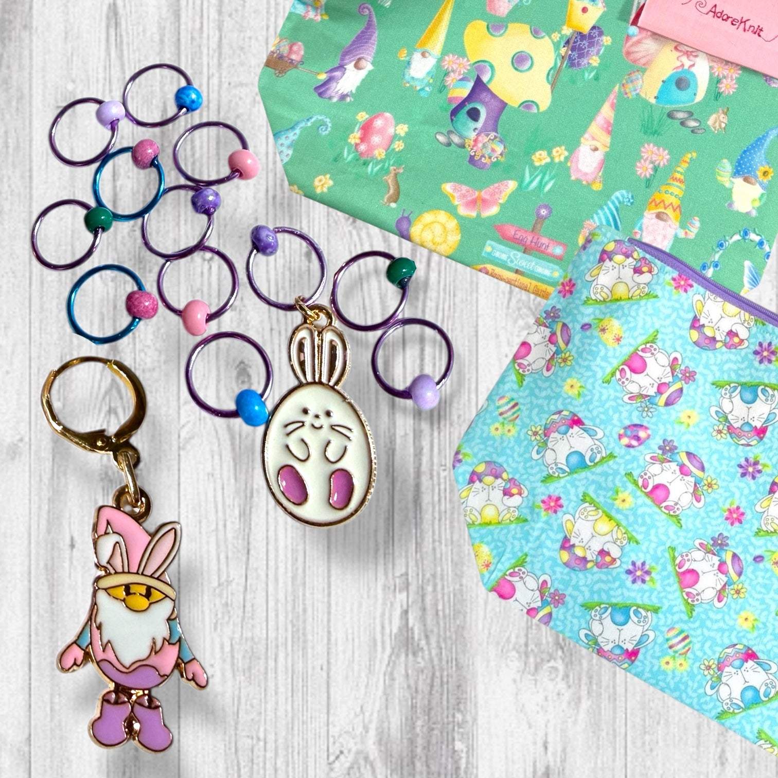 * Go with both a Gnome Friend Wearing Bunny Ears Progress Marker and 12 Stitch Markers (including a white bunny).