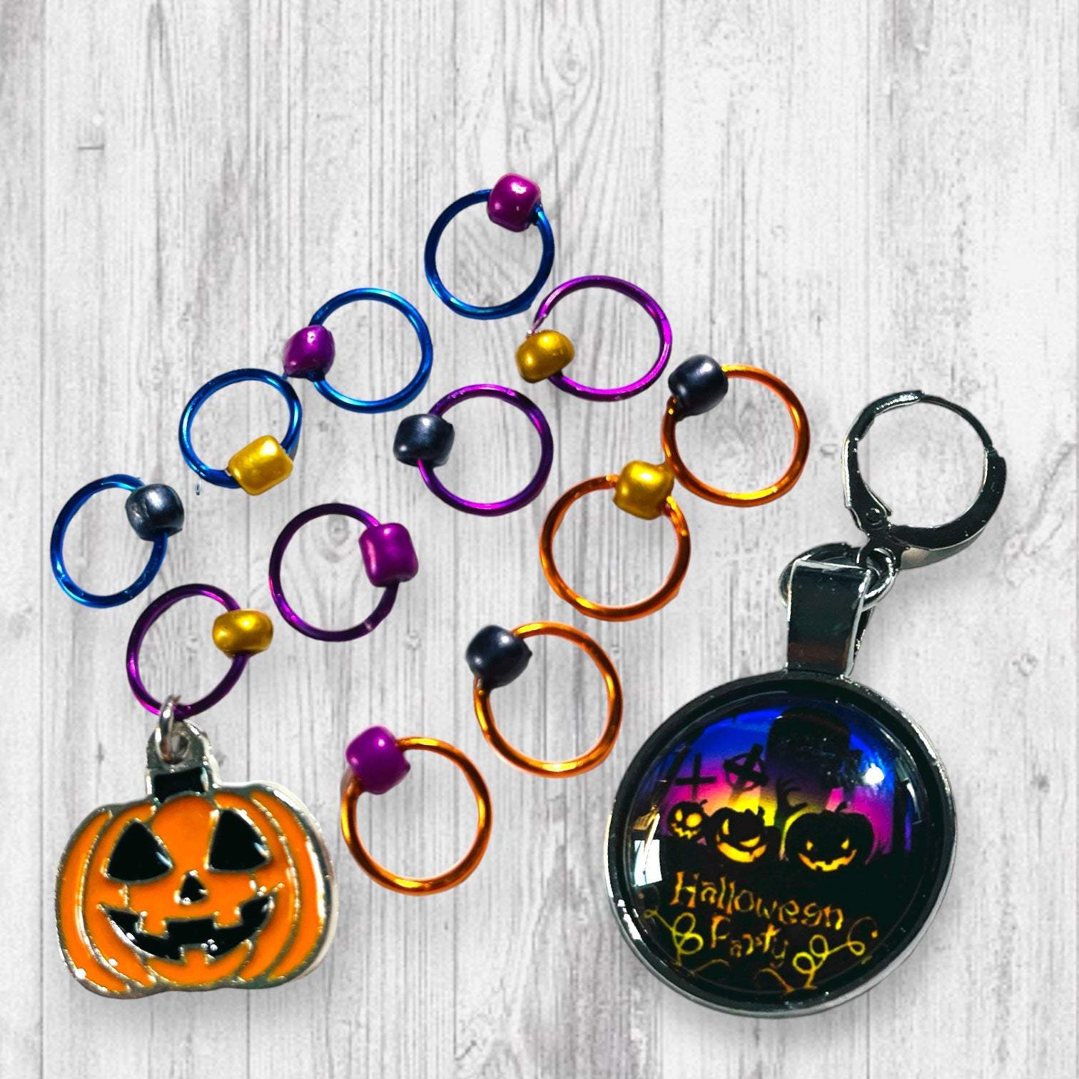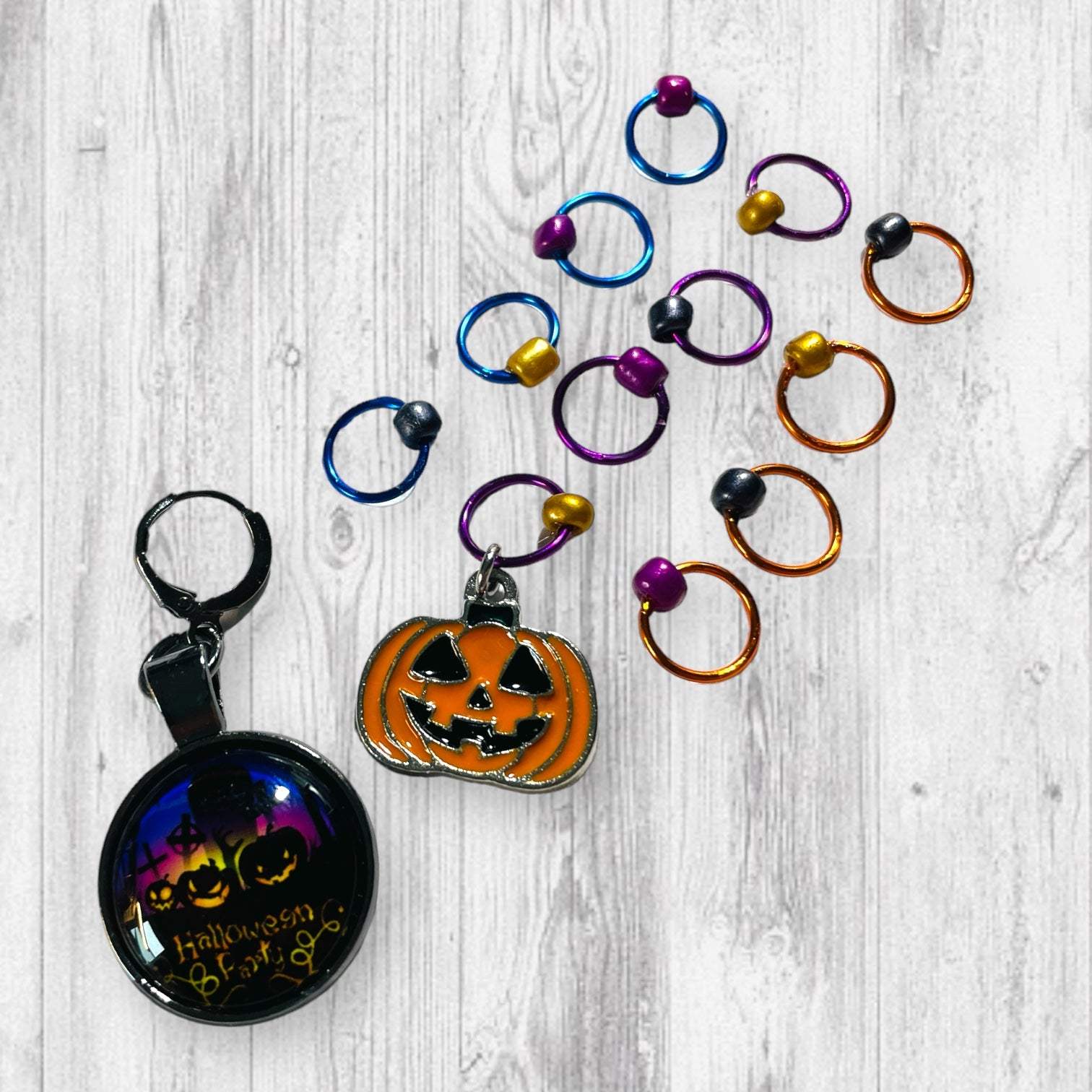Halloween Party Progress and Stitch Markers. Great for your Halloween Knitting! These stitch markers are great for a knitter or crocheter. Include in a swap package, teacher gift, or a little pick me up for the knitter in your life.