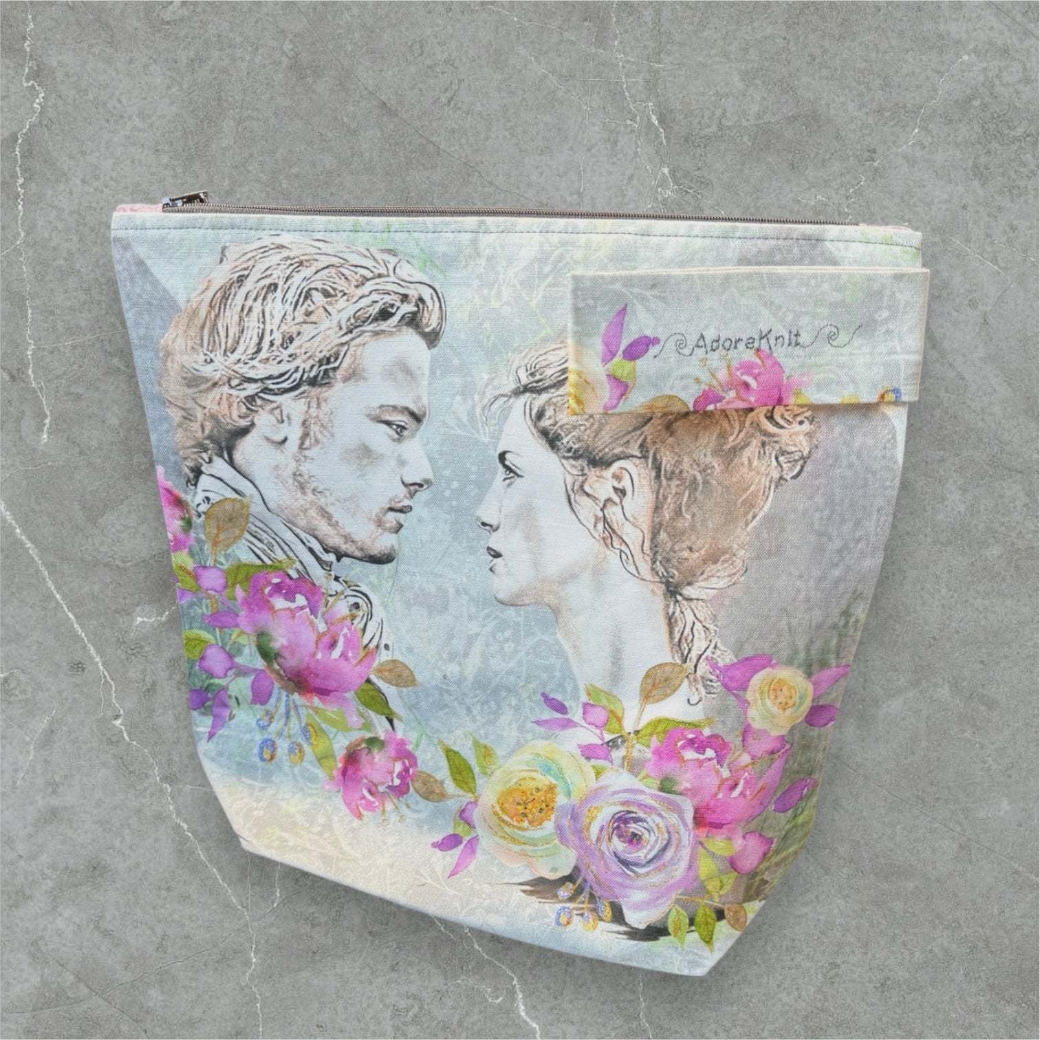 The Love Across the Centuries Project Bag was part of our 2024 Love Story Marker Club, inspired by a romance that defies time. The canvas fabric features a softly marbled texture that lives somewhere between grey and teal, a beautifully moody colorway that is even more charming in person than it is on camera.