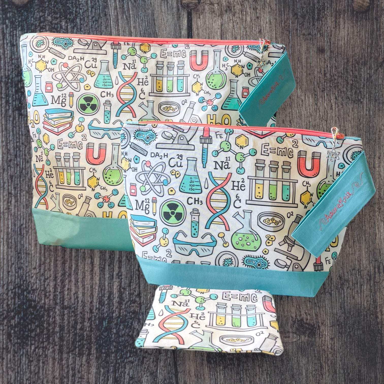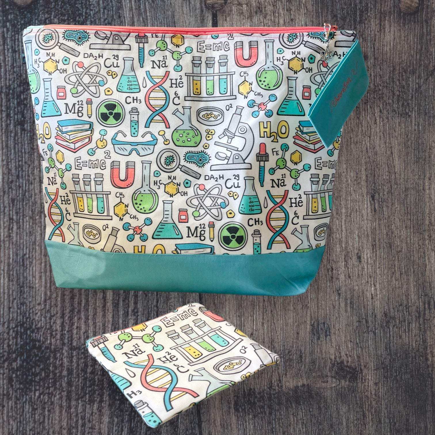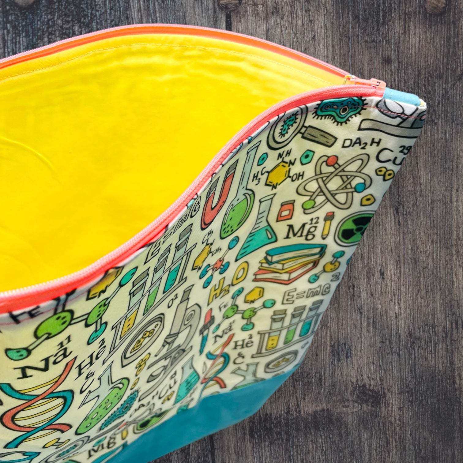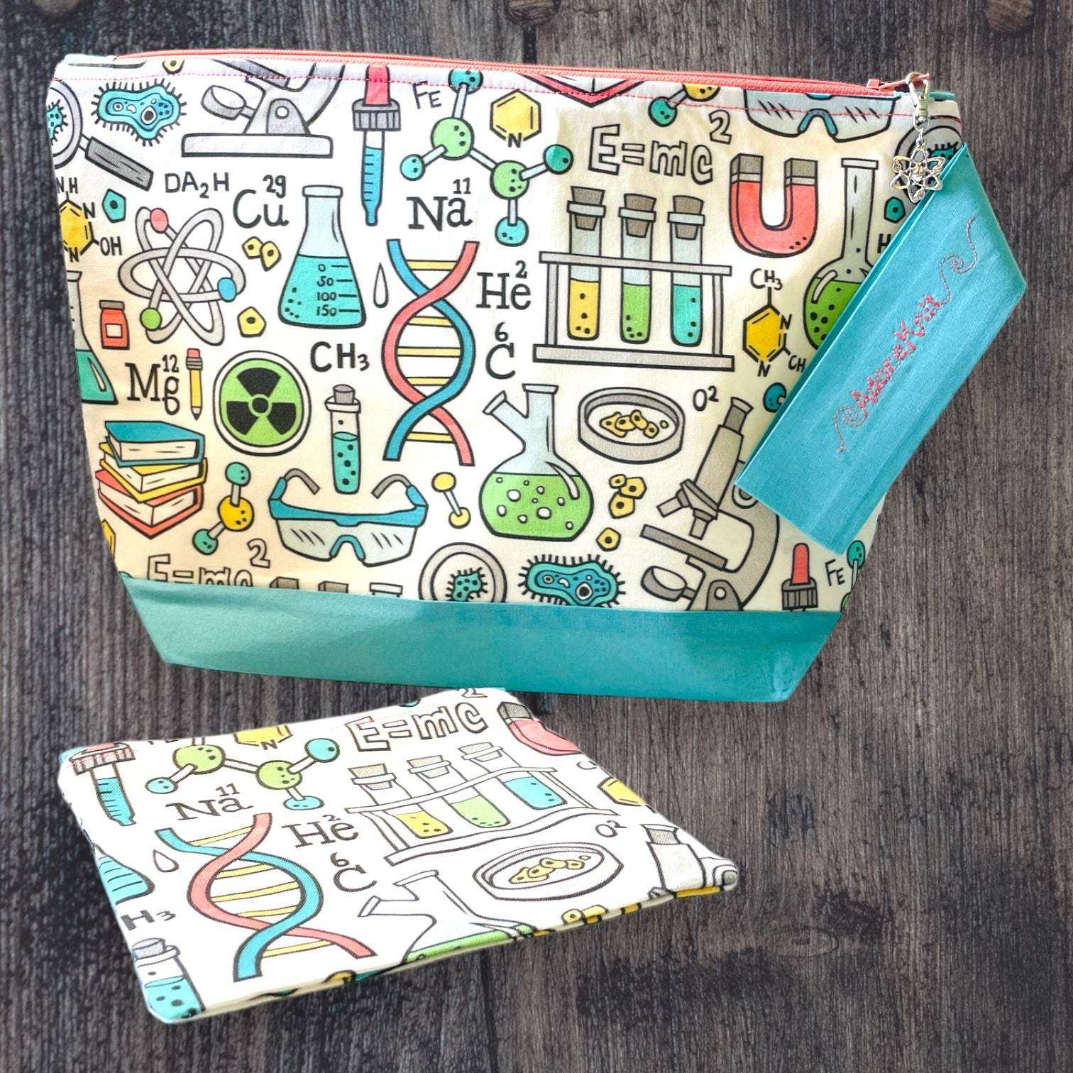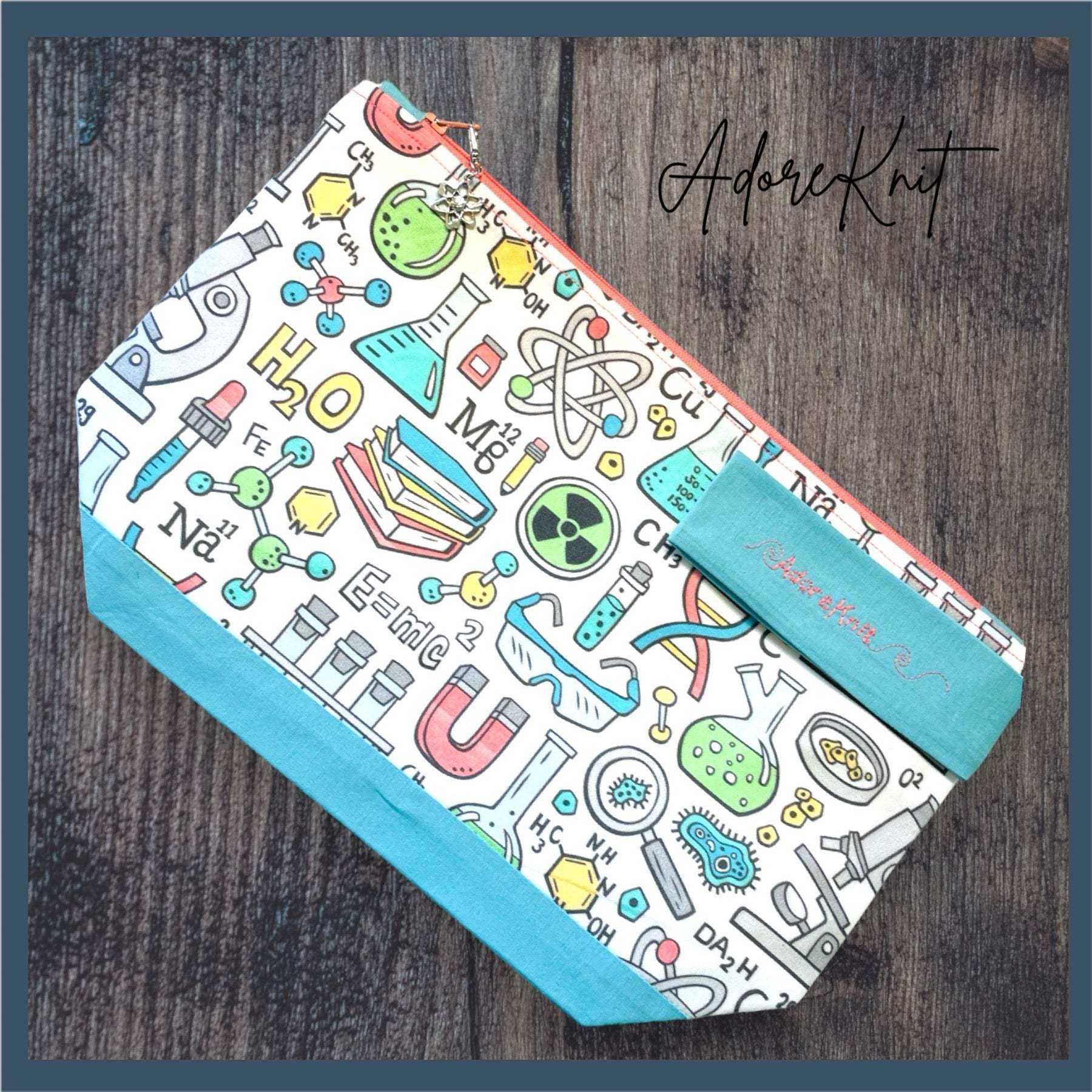 Microscopes Always Win Arguments Project Bag! This zippered project bag is great for a knitter or crocheter. It is fully lined and interfaced to keep your projects and needles safely inside your bag and because we like our bags to maintain their structure. This bag is available in our Equator size with or without a matching notions pouch. All bags were sewn in our home studio in New Hampshire.
