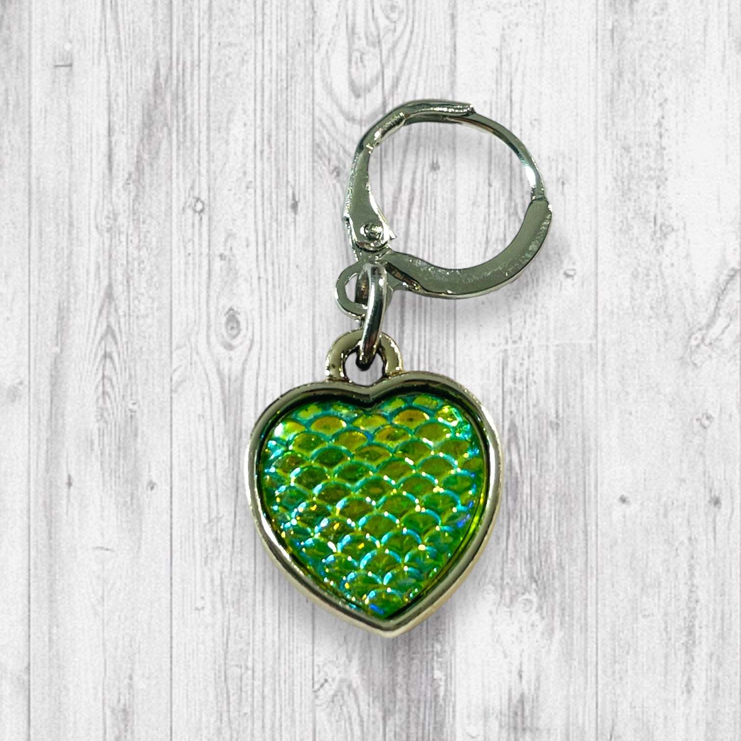 * A Green Dragon Scale Heart Progress Marker/Keeper/Zipper Pull or