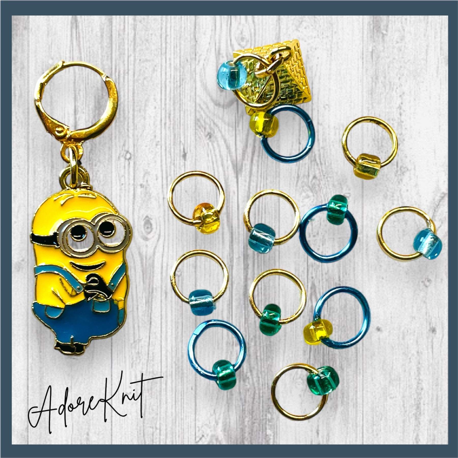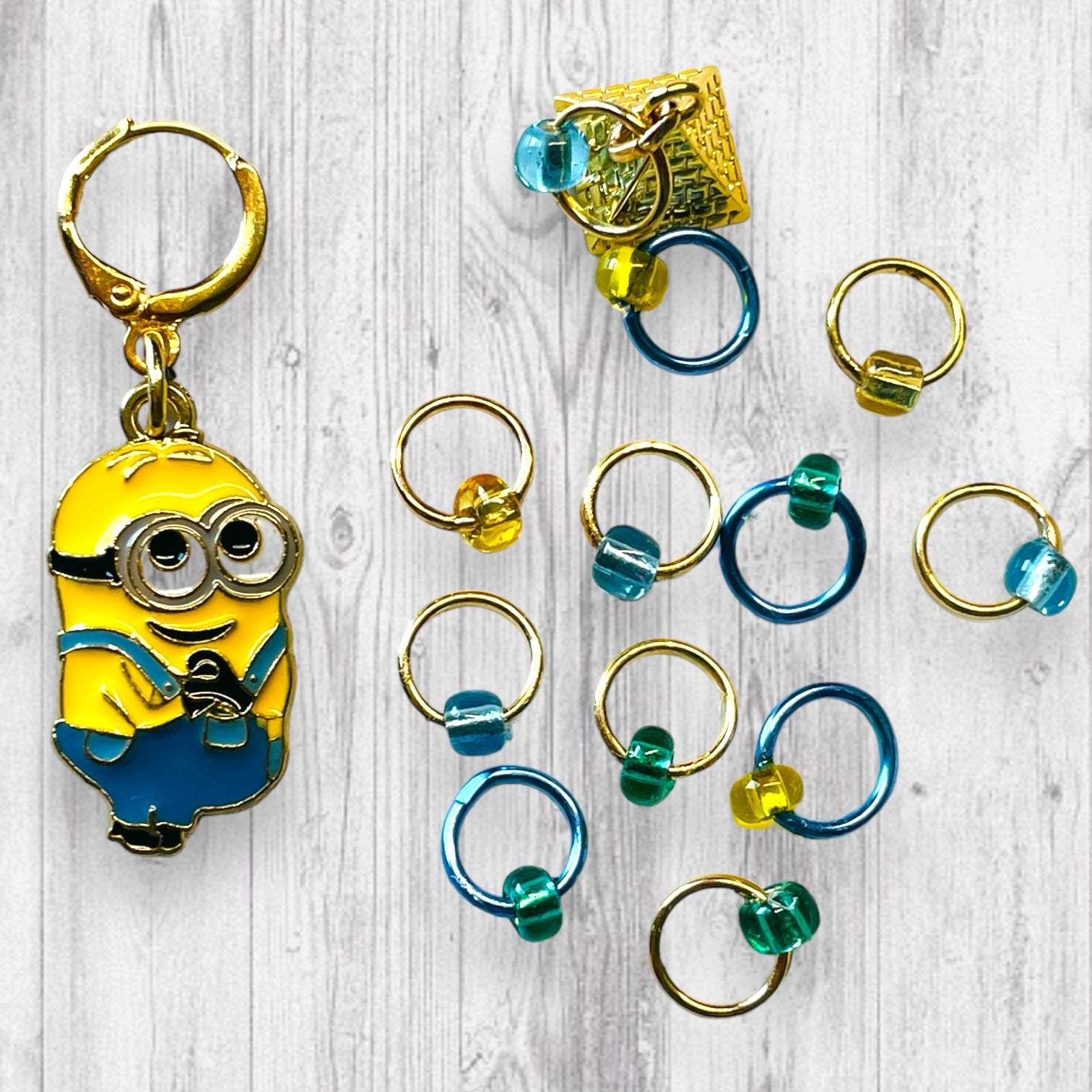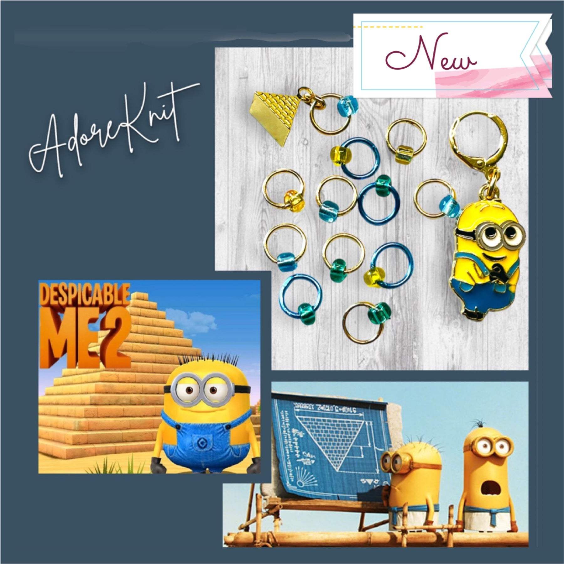 Pyramid Building Minion Progress and Stitch Markers. Inspired by the Minions of the beloved 2010 movie, Despicable Me. The prefect gift for a knitter! These stitch markers are great for a knitter or crocheter. Include in a swap package, teacher gift, or a little pick me up for the knitter in your life.