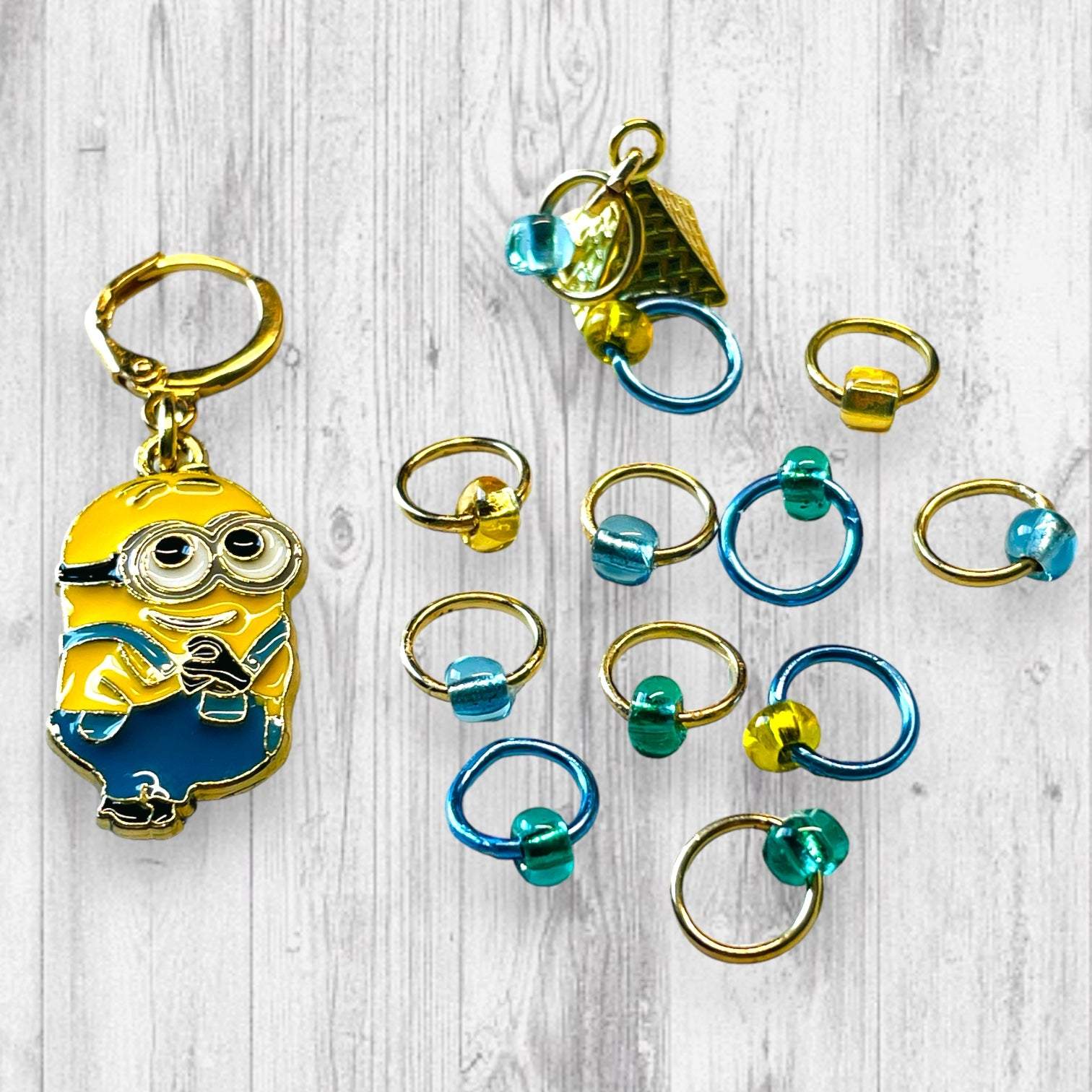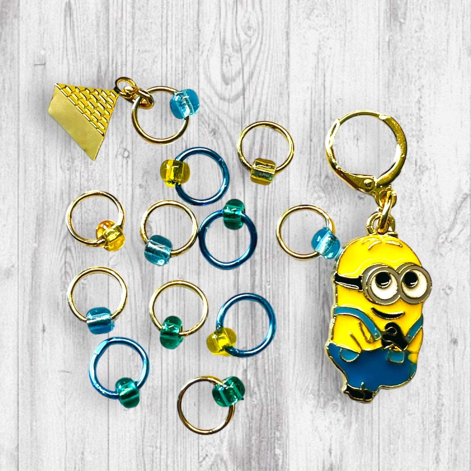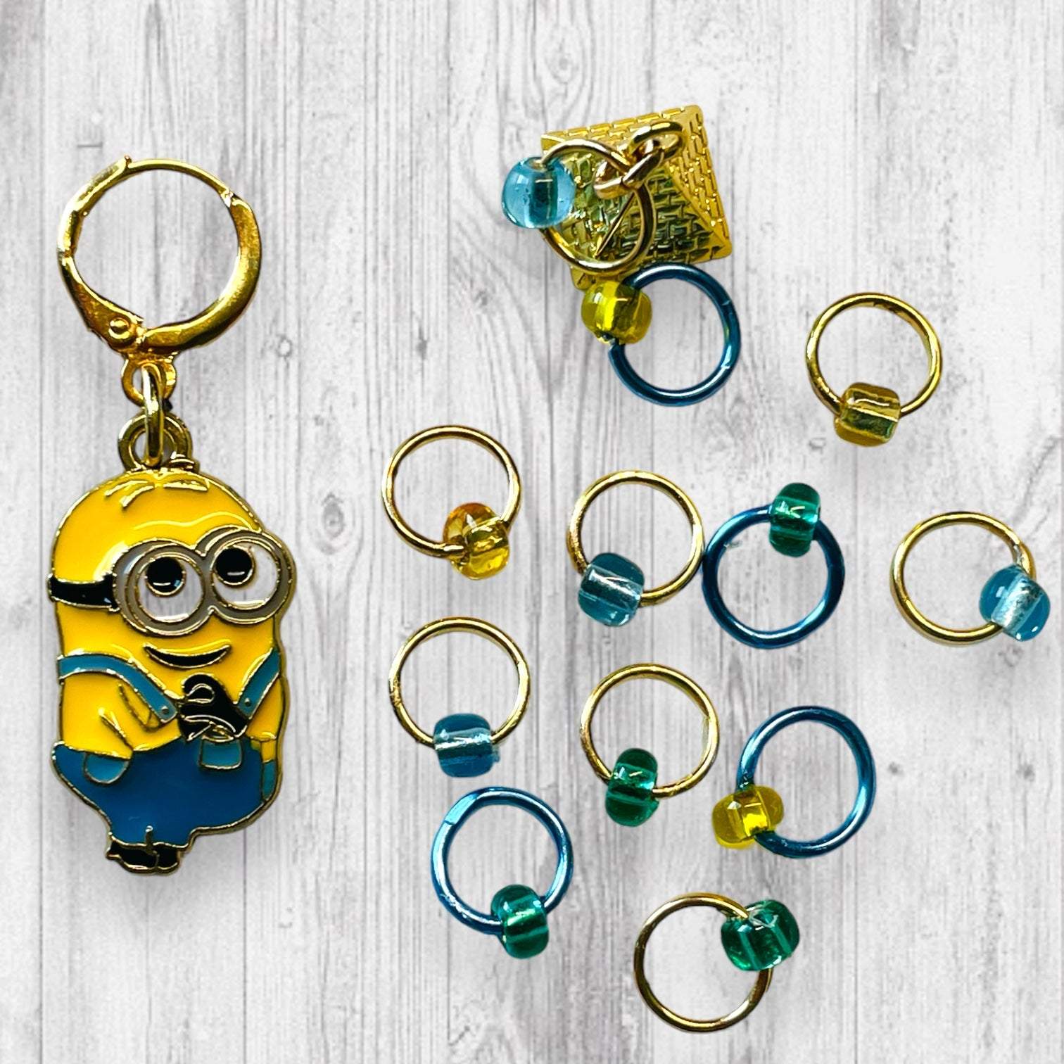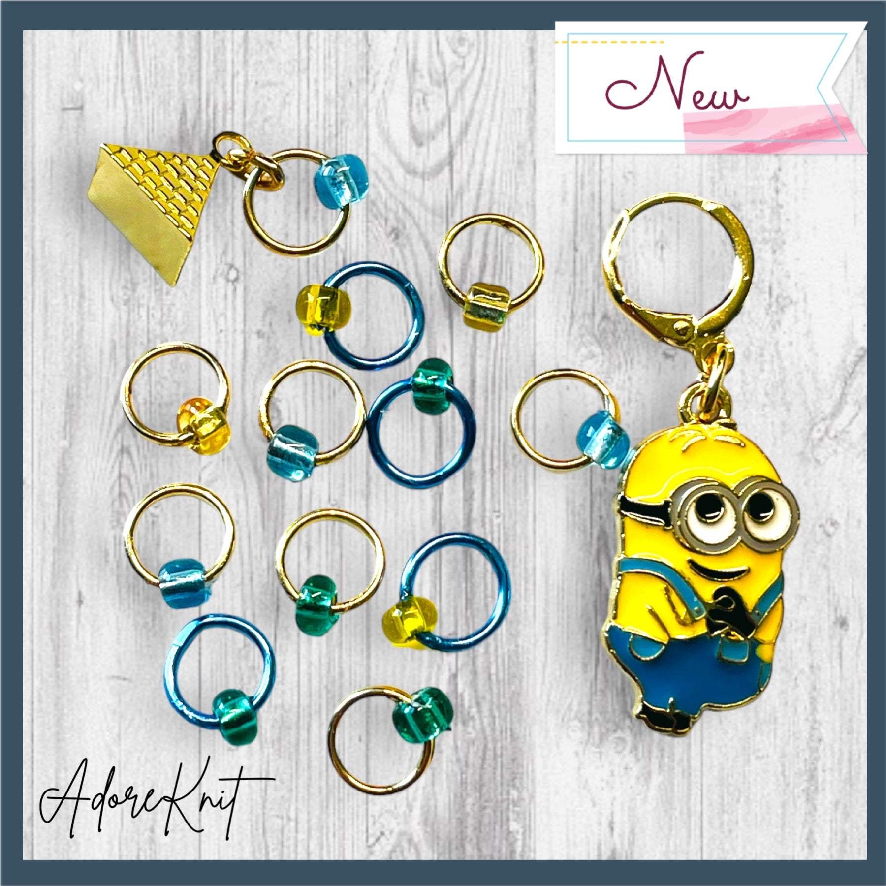 Pyramid Building Minion Progress and Stitch Markers. Inspired by the Minions of the beloved 2010 movie, Despicable Me. The prefect gift for a knitter! These stitch markers are great for a knitter or crocheter. Include in a swap package, teacher gift, or a little pick me up for the knitter in your life.