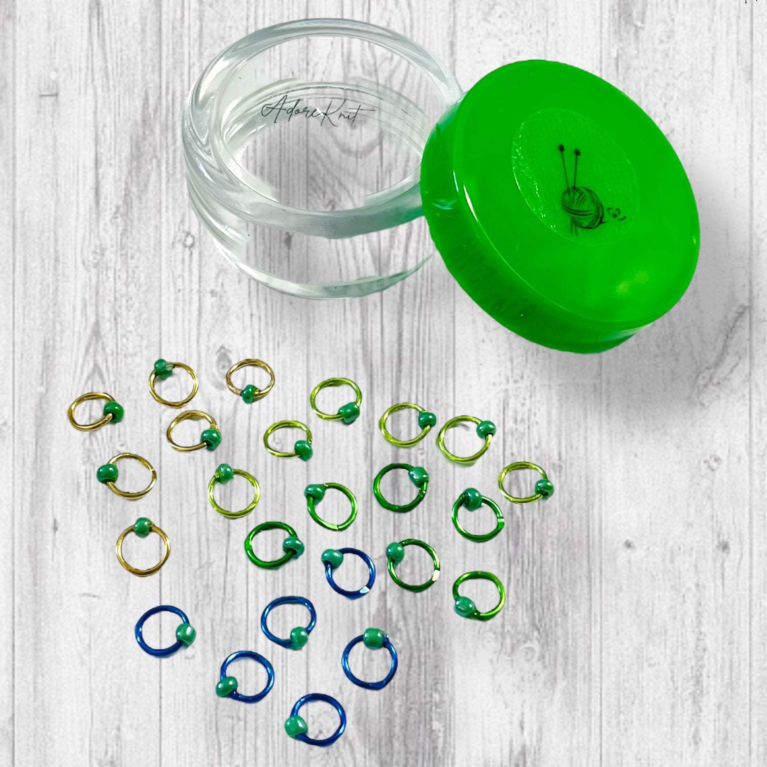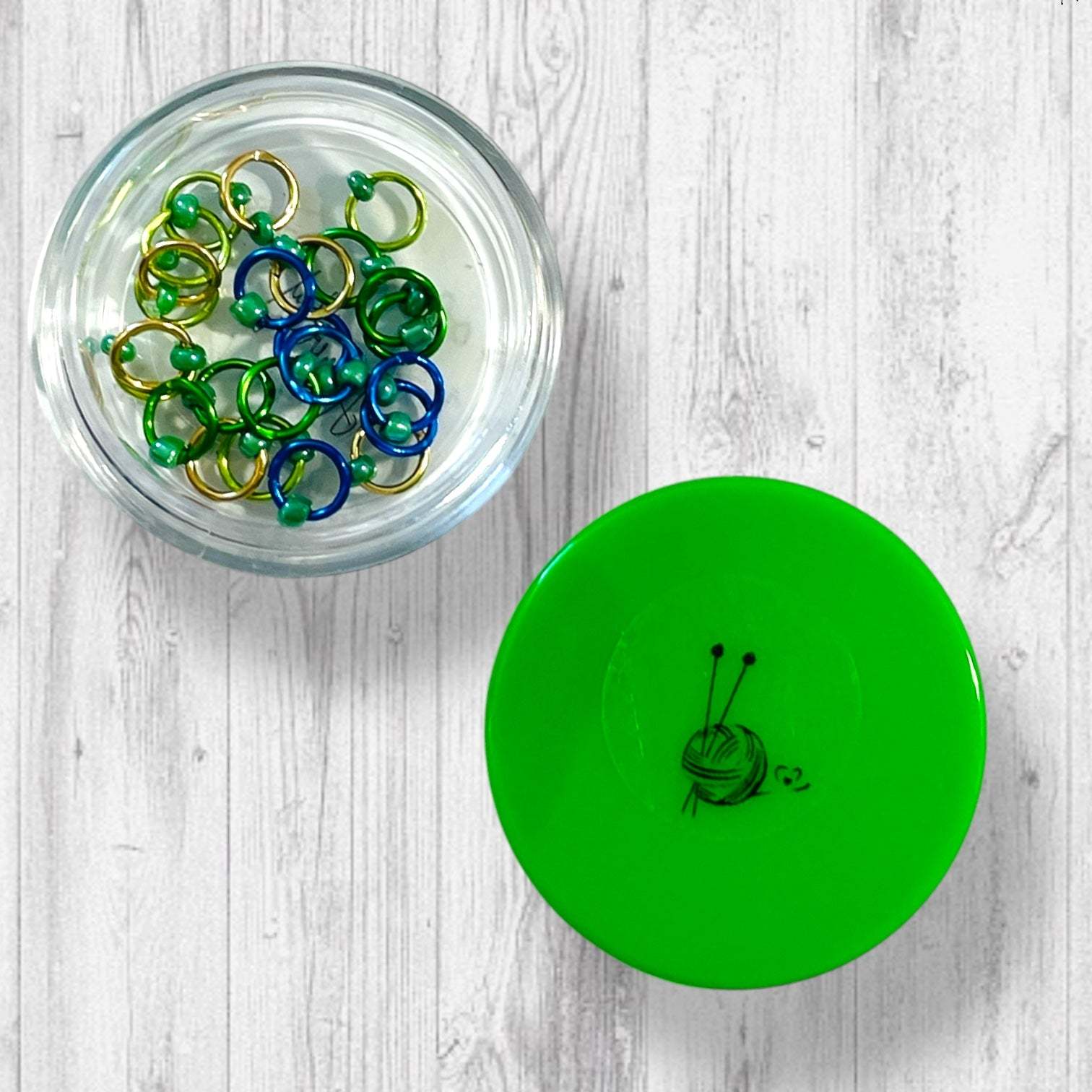 Sock Knitter's Companion Tiny Stitch Markers with Marker Container Green with Lustrous Green