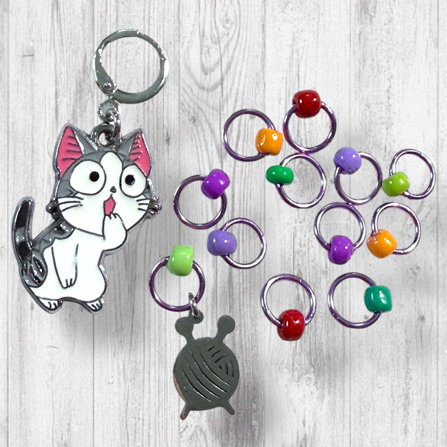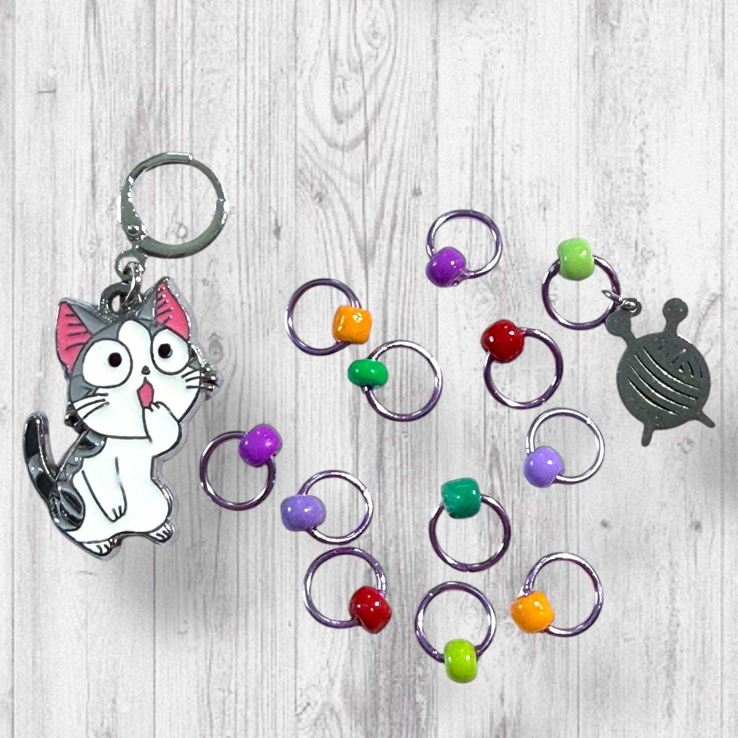* Go with both the Surprised Cat Progress Marker and 12 Stitch Markers (Including a yarn ball BOR marker).