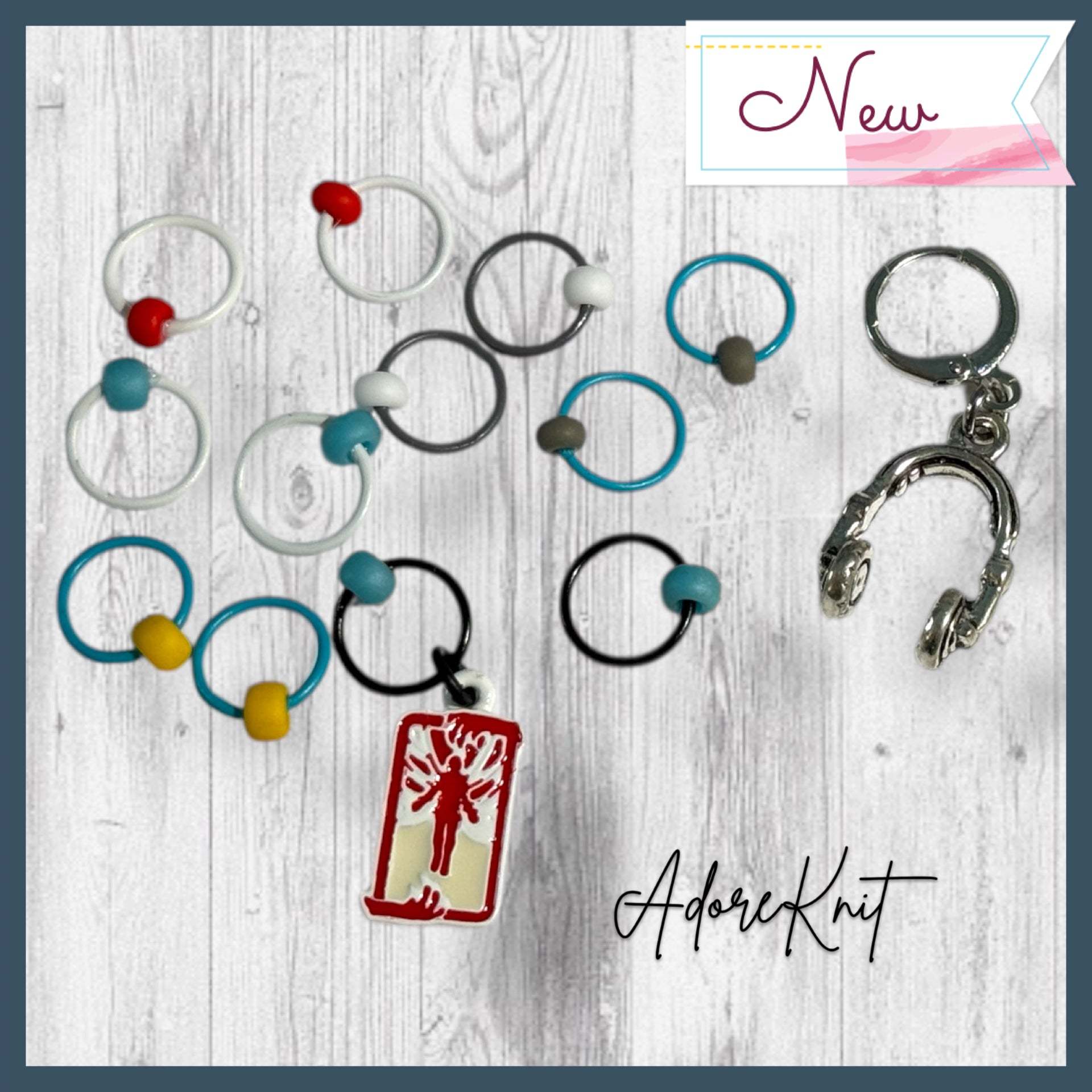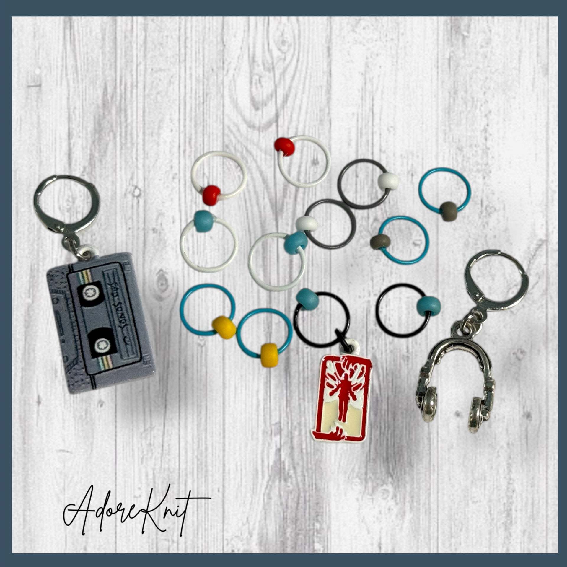 When Music Saves You Progress and Stitch Markers Retro Supernatural Adventure Stitch Markers, 80s Sci-Fi Inspired Knitting Markers, Nerdy Fiber Gifts by AdoreKnit.